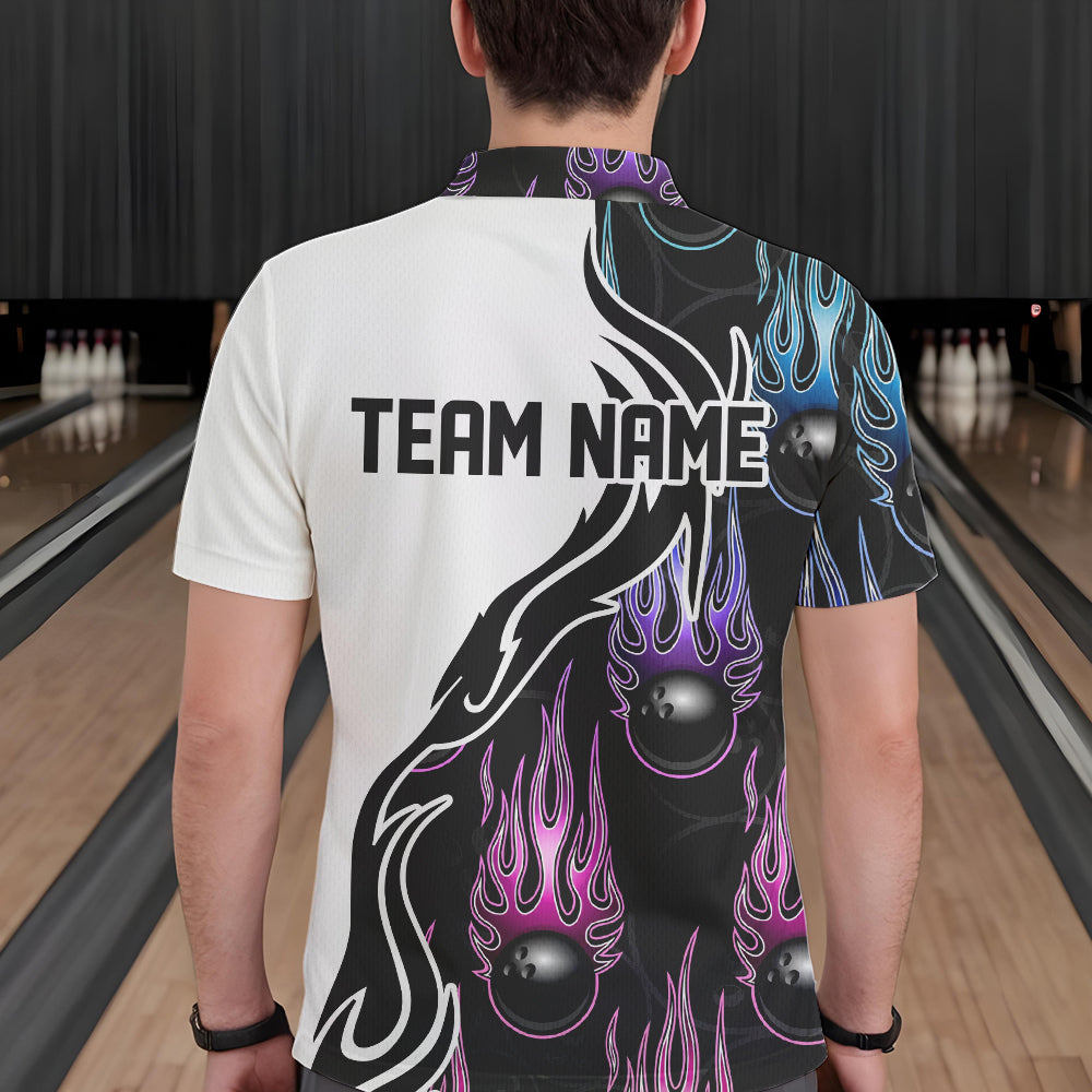 Pink Purple Blue Flame Ball Custom Bowling Team Men Polo Shirts, Fire Bowling League Shirt IPHW8864