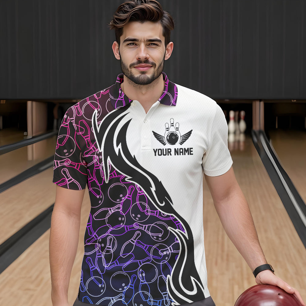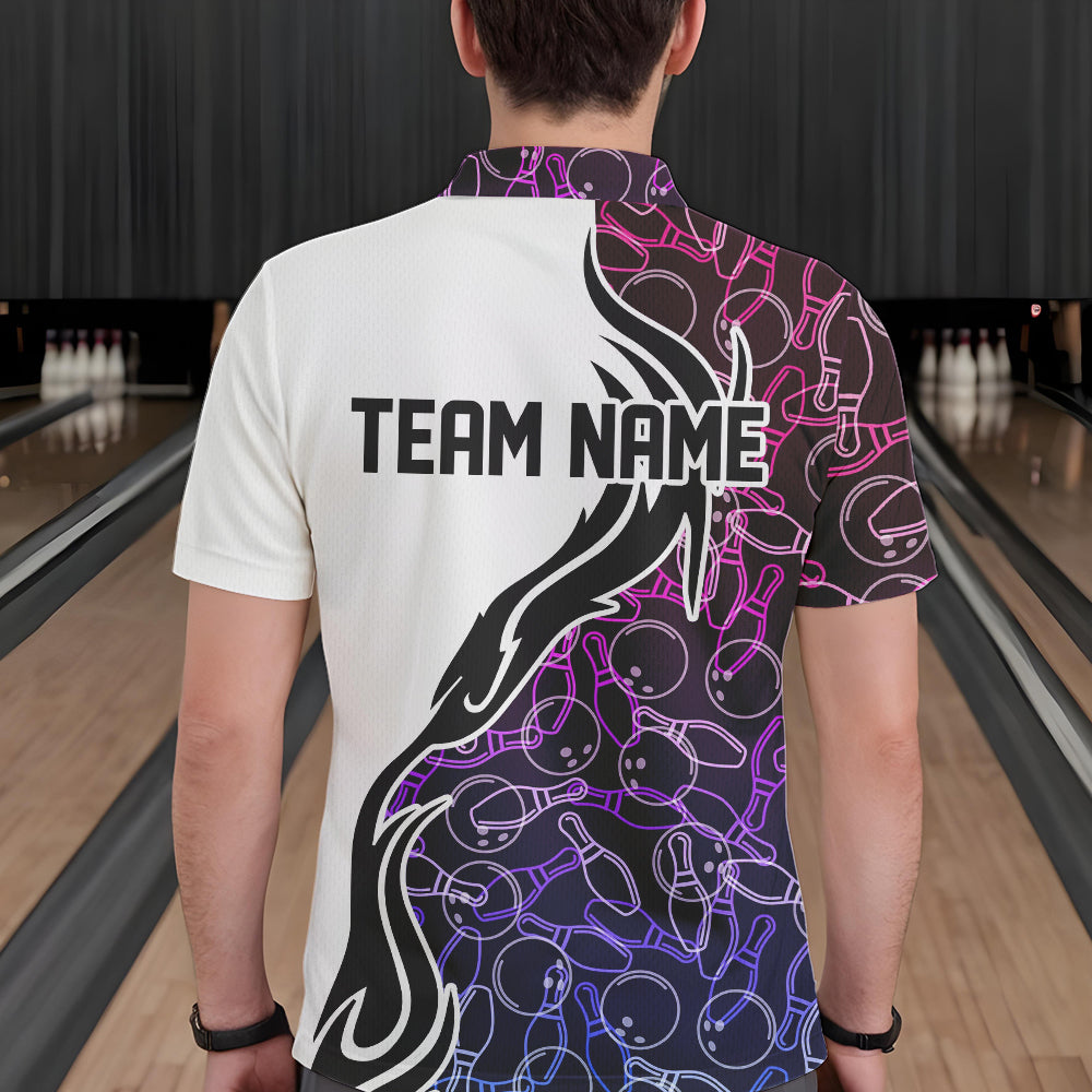 Blue Purple Pink Bowling Pattern Custom Bowling Team Men Polo Shirts, Bowling League Shirt IPHW8869