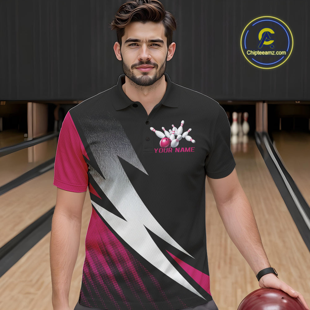 Black And Pink Custom Bowling Jerseys, Men Polo Shirt Bowling Tournament Outfits IPHW9081