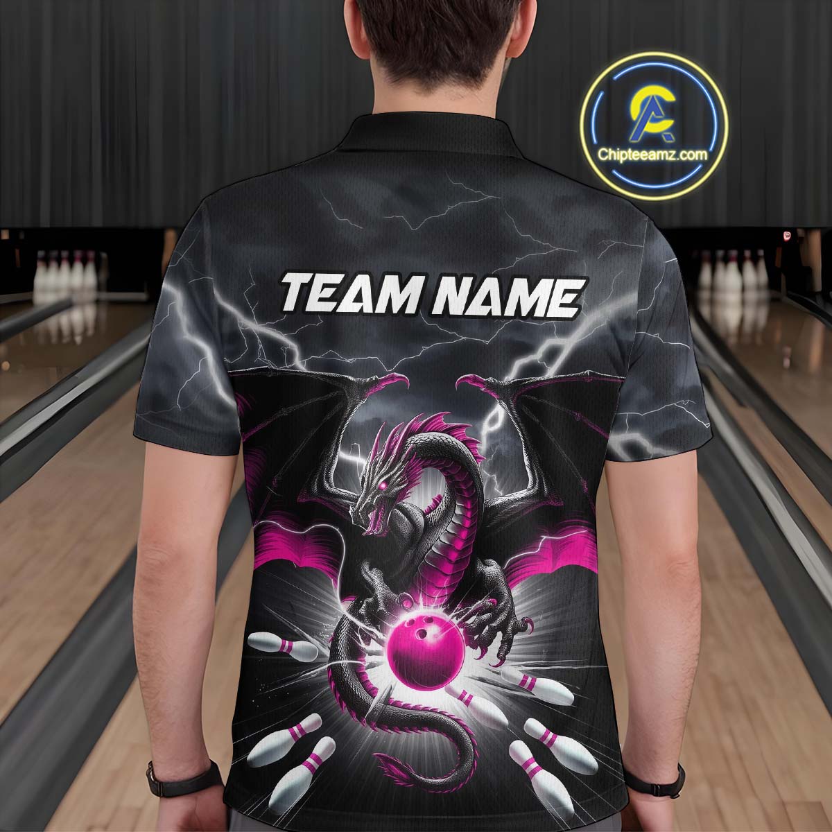 Custom Thunder Lightning Pink Dragon Bowling Team Polo Shirts For Men, Bowling Jerseys IPHW9113