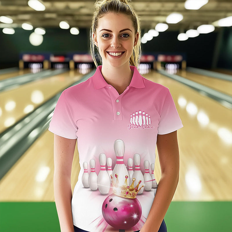 Custom Pink Bowling Queen Bowling Polo Shirts For Women, Ladies Bowling Team Shirts IPHW8463