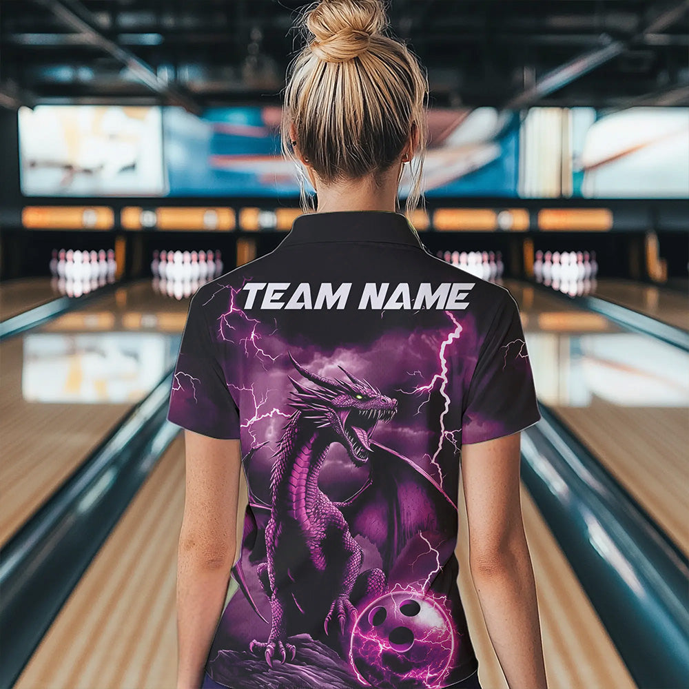 Black And Pink Thunder Lightning Custom Dragon Womens Bowling Team Shirts, Bowling Uniform IPHW8633