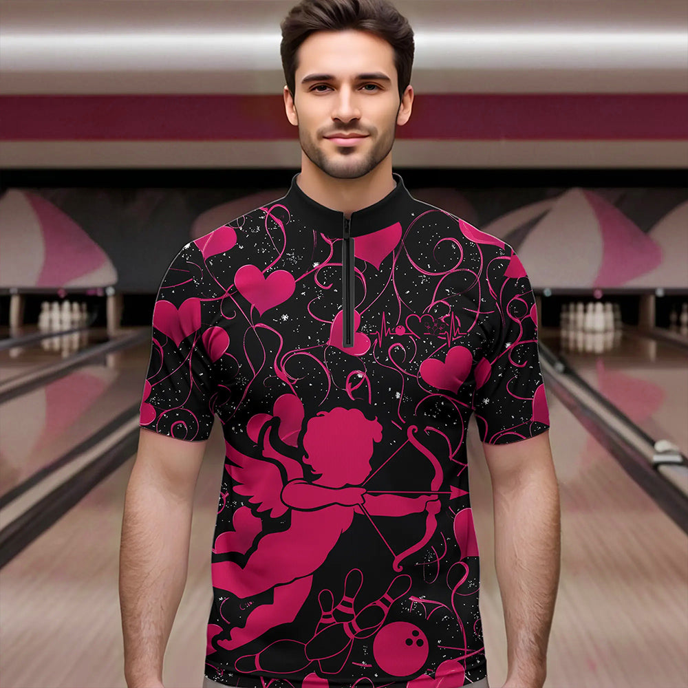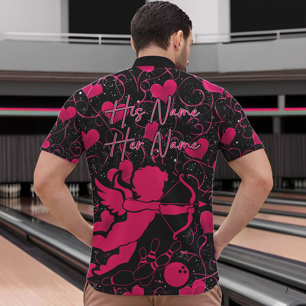 Black And Pink Custom Valentines Day Bowling Quarter-Zip Shirts For Men, Bowling Couple Shirt IPHW8330