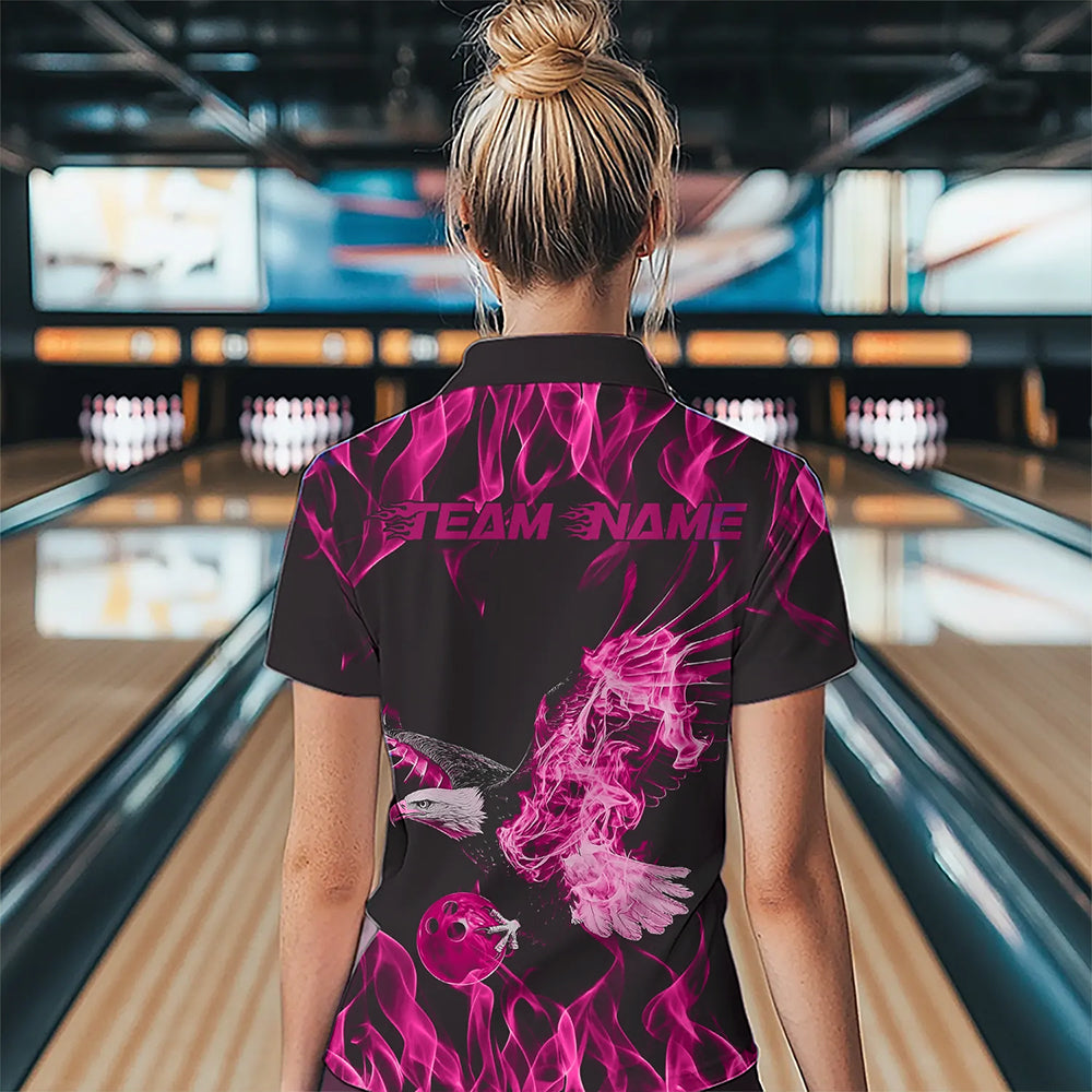Custom Black And Pink Flame Eagle Bowling Women Quarter-Zip Shirts, Bowling League Shirt IPHW8791
