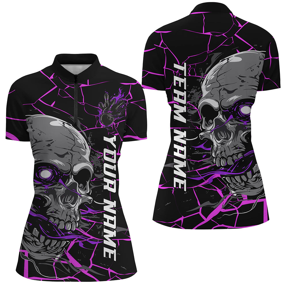 Custom Purple And Pink Halloween Skull Bowling Shirts For Women, Outfit Bowling For Team IPHW7094