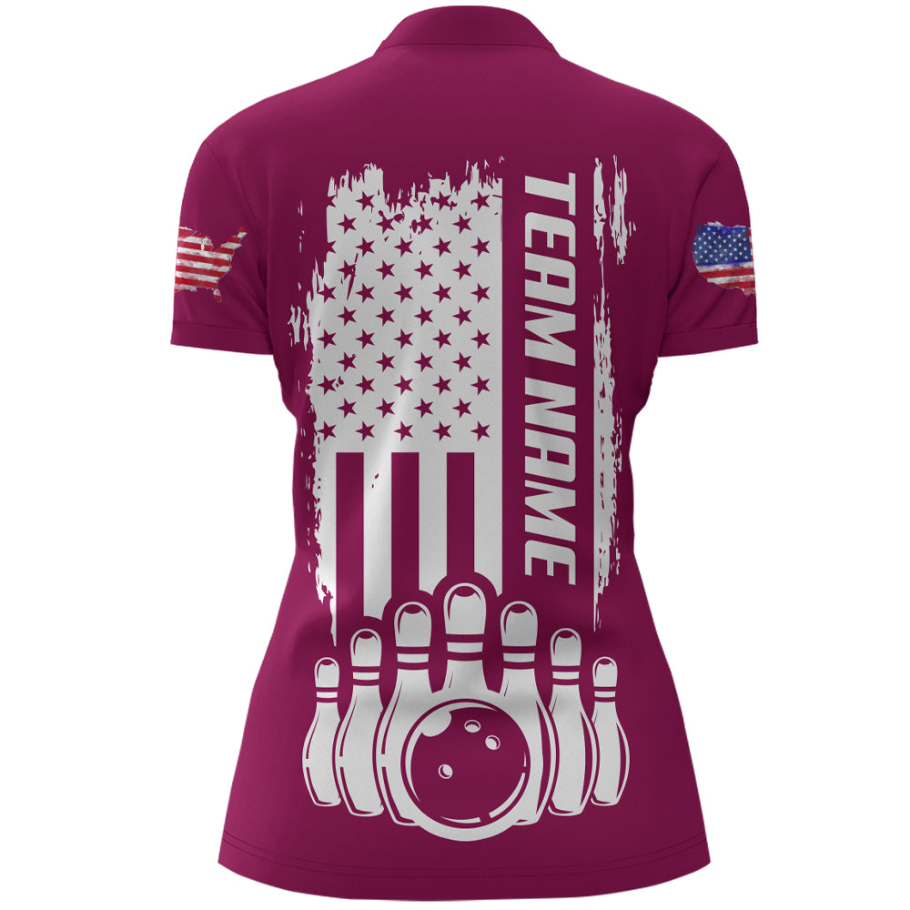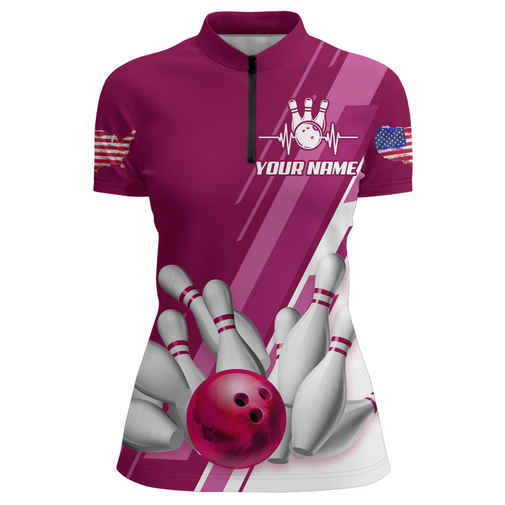 Women's Bowling Shirt Pink 1/4-Zip Bowling Shirt Patriotic Bowling Shirt QZT281