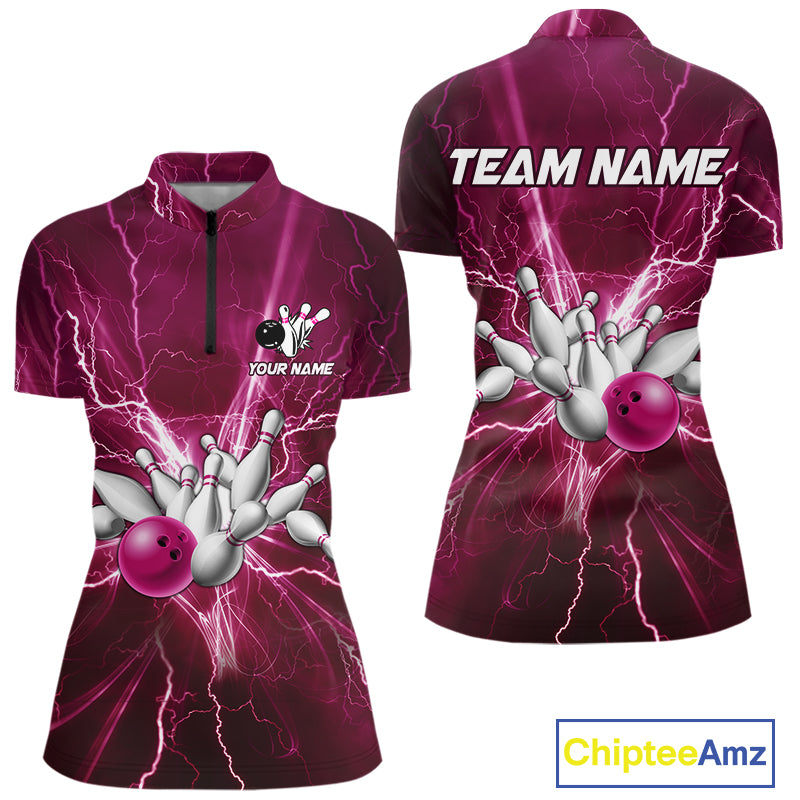 Women's Bowling Shirts Custom Pink Lightning Thunder Bowling Team Jersey, gift for team Bowlers NQS10603