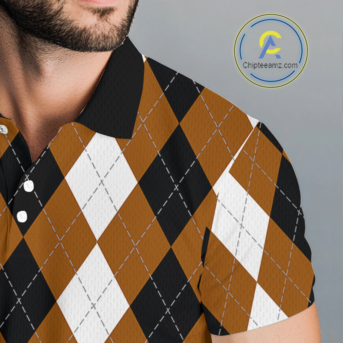 Mens golf polo shirt custom brown argyle plaid pattern golf attire for men NQS9848