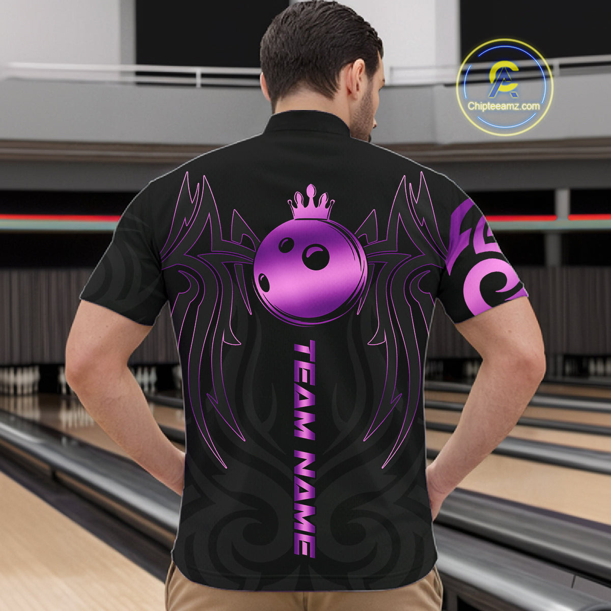 Black and Purple crown Bowling ball Polo, Quarter Zip Shirts for Men Custom Bowling Team jerseys NQS10732