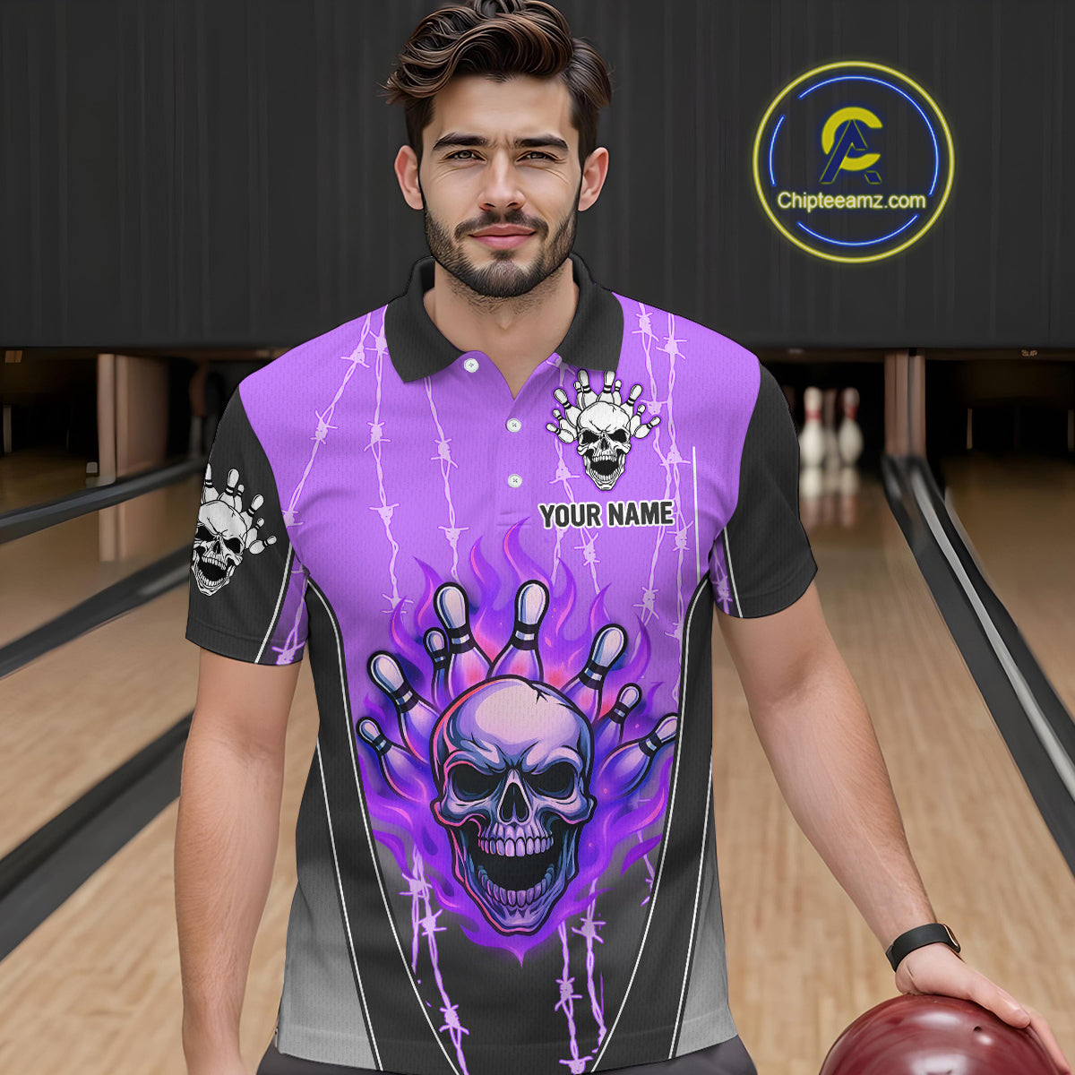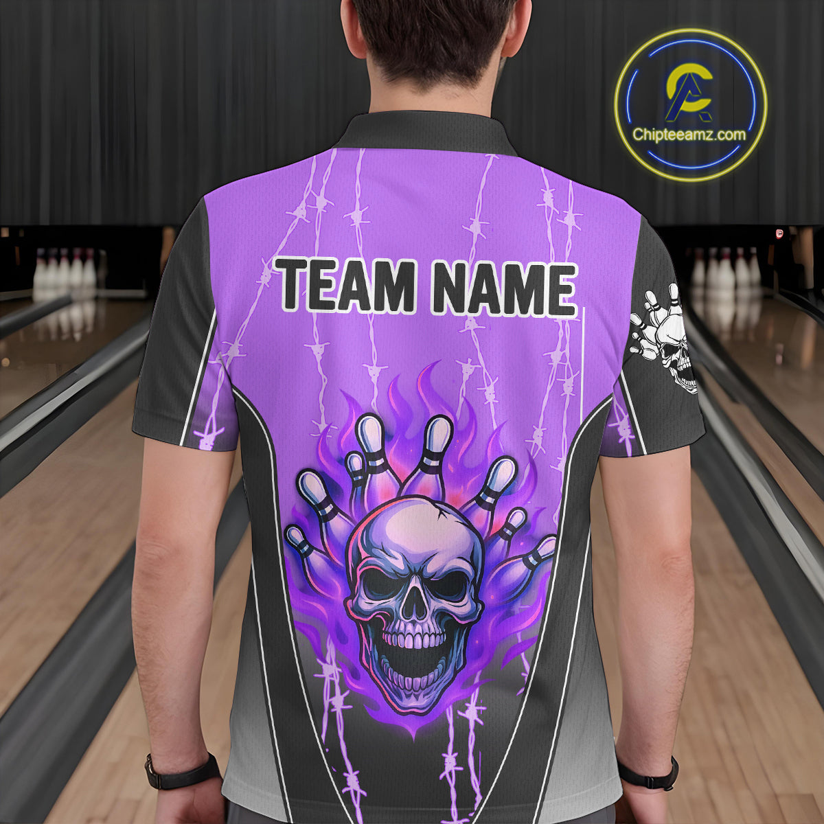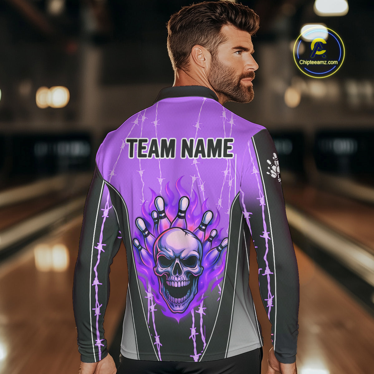 Black and purple flame skull Bowling Polo, 1/4 Zip Shirt for men Custom Team Bowling League Jersey NQS10204