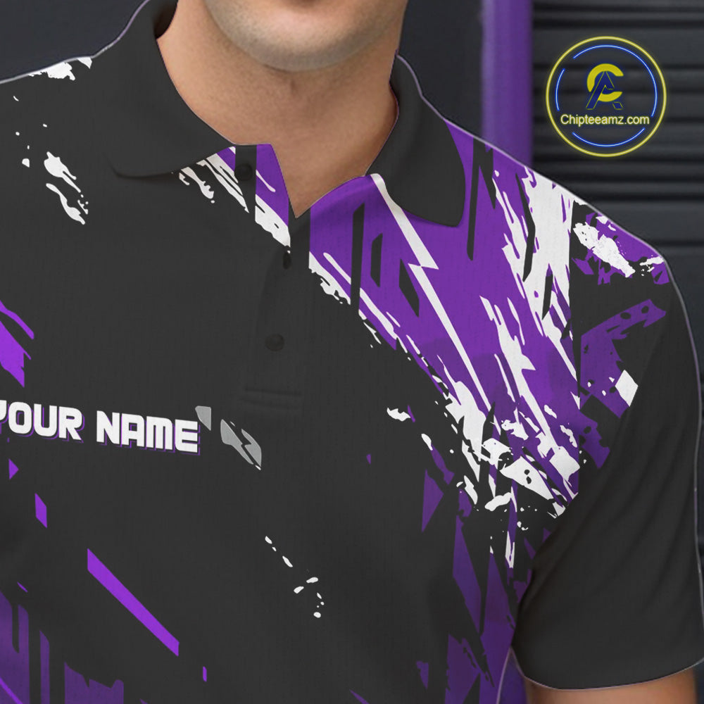 Black and Purple Mens bowling shirts Custom retro bowling ball and pins bowling team league jerseys NQS10642