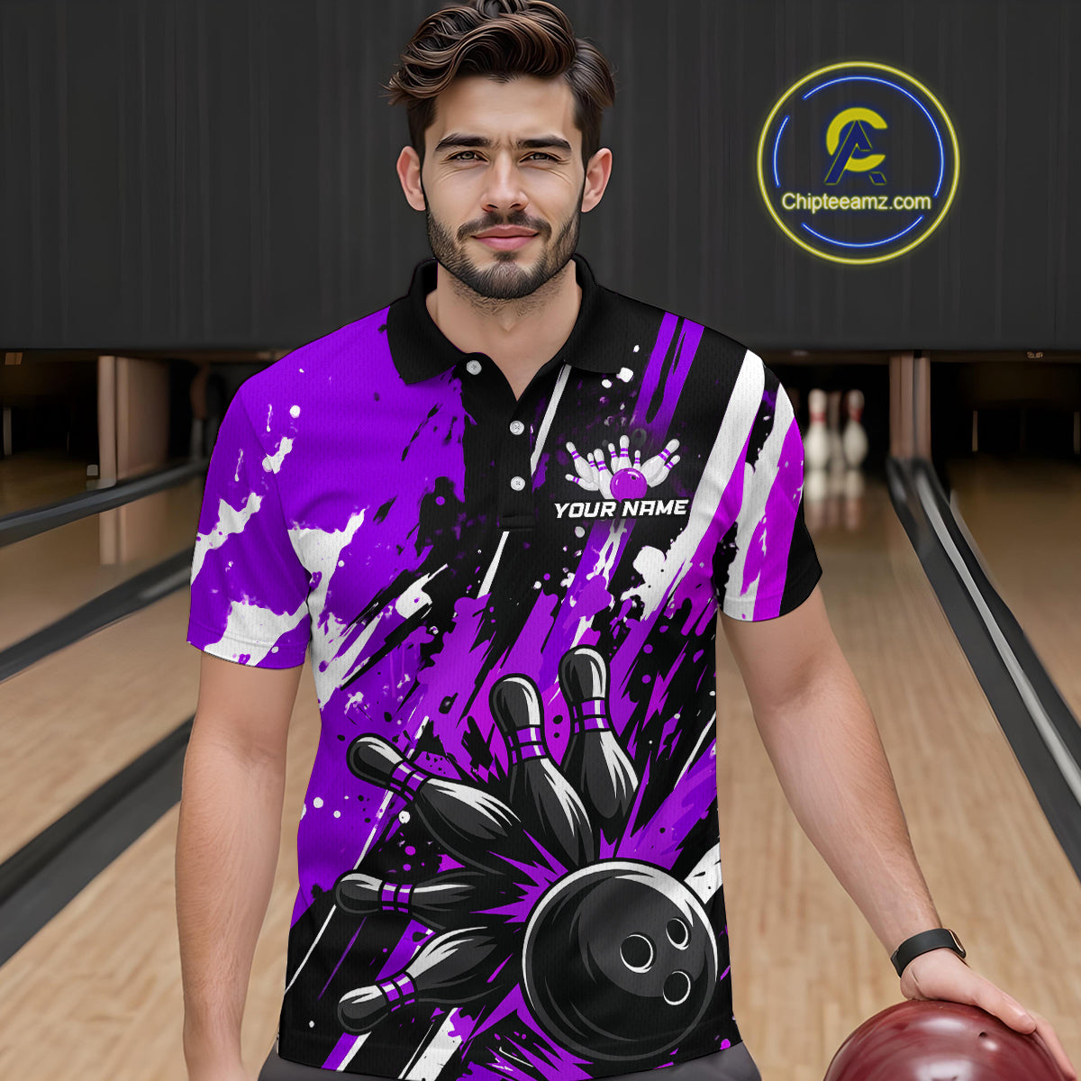 Custom Purple Bowling Jersey for Men Bowling Uniform Polo & 1/4 Zip Bowling Team Shirts HNT105
