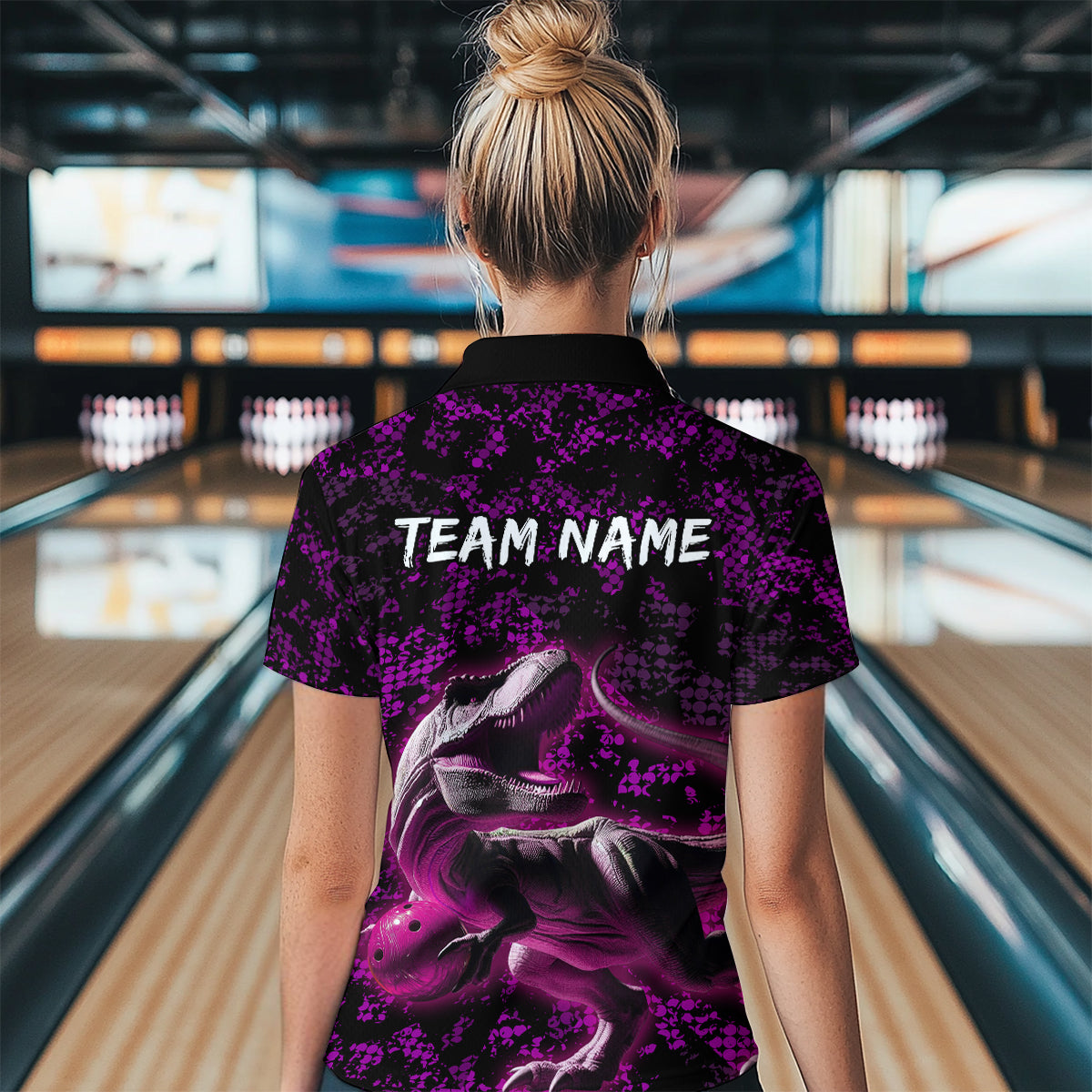 Custom Purple Bowling Shirt Dinosaur Bowling Jersey Quarter Zip Bowling League QZT632