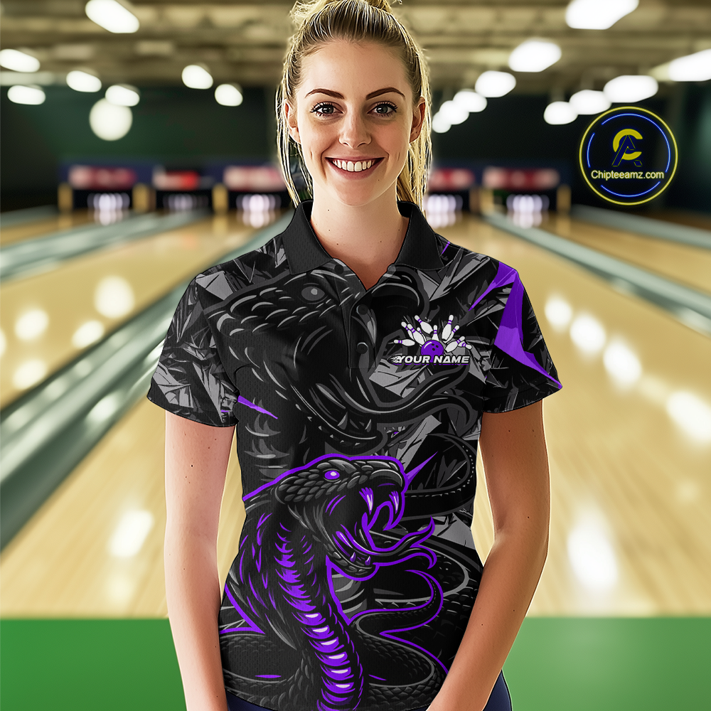 Custom Purple Cobra Snake Bowling Jersey for Women Bowling Team Shirts Polo & 1/4 Zip HNT137