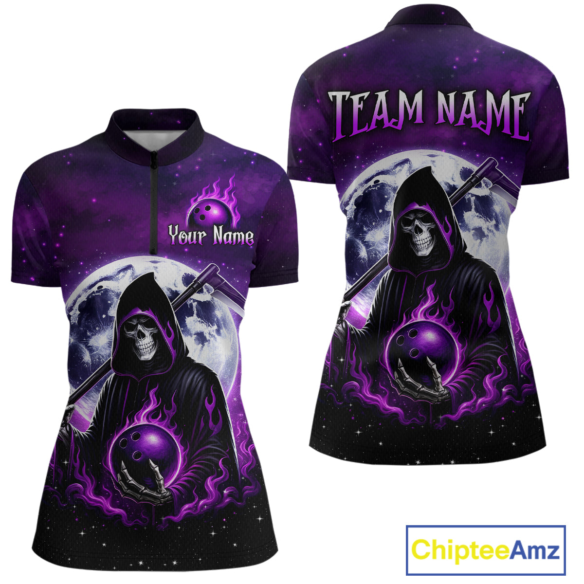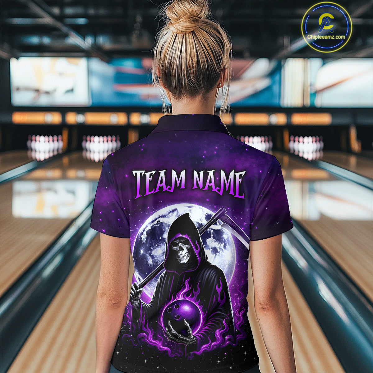 Custom Purple Skeleton Bowling Jersey for Women Bowling Uniform Polo & 1/4 Zip Bowling Team Shirts HNT109