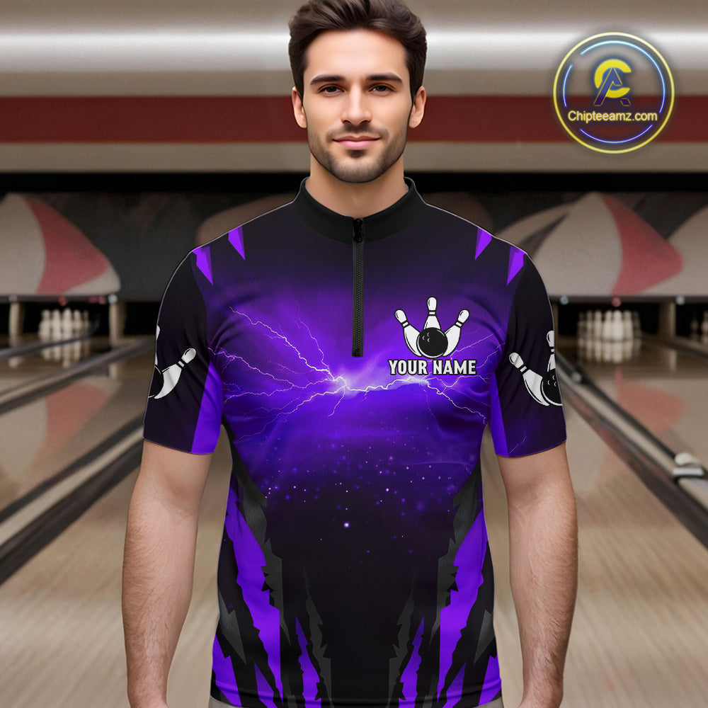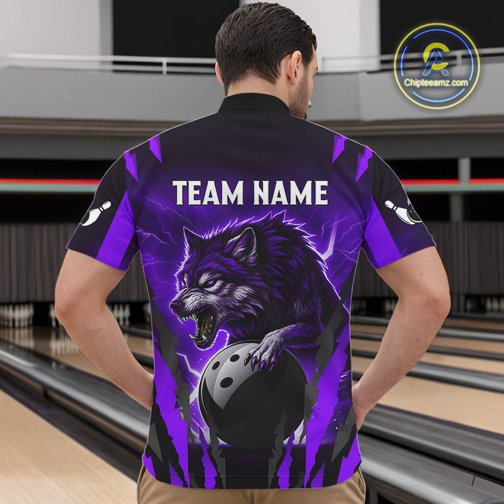 Purple Thunder Lightning Custom Wolf Bowling Shirts For Men, Bowling Team Jersey Polo & 1/4 Zip TDM4646