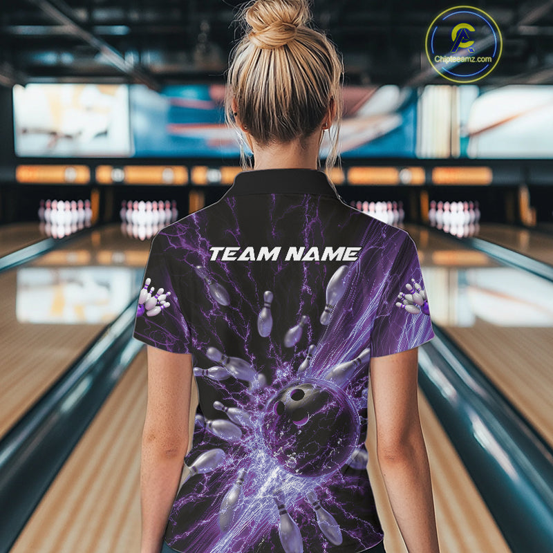 Custom Purple Thunder Lightning Bowling Team Women Polo Shirts, Bowling Jerseys IPHW9744