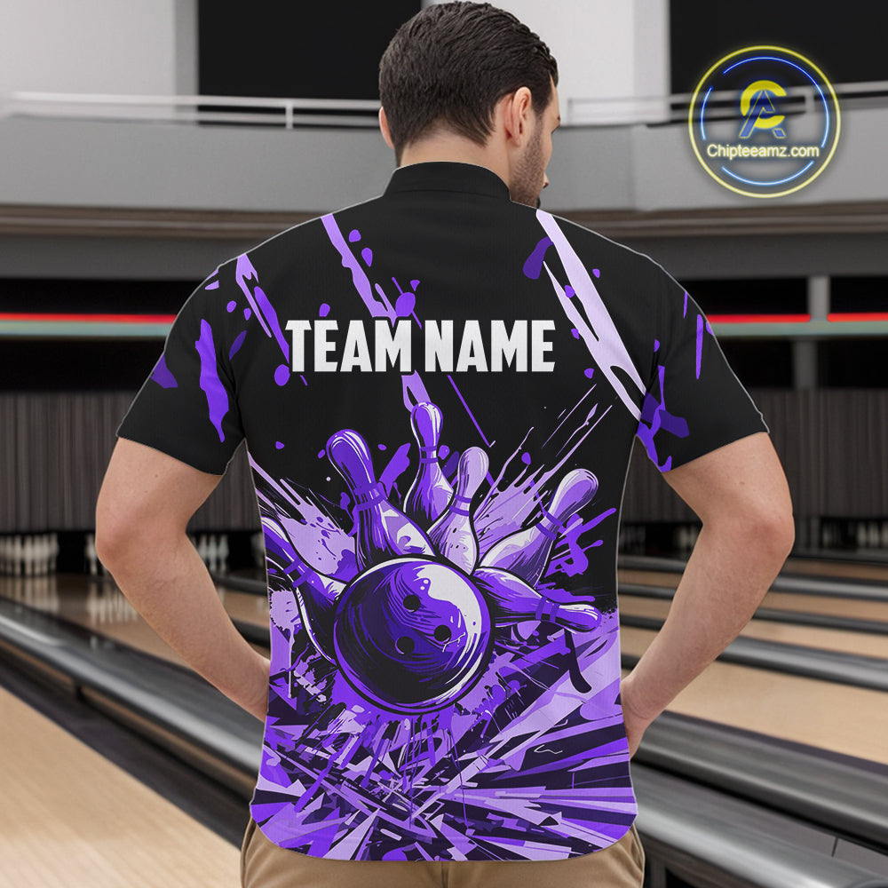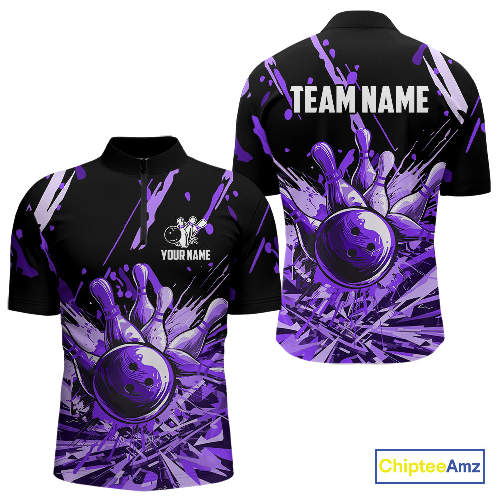 Purple bowling jerseys Bowling Polo, 1/4 Zip Shirt for Men Custom Bowling Team shirts for bowlers NQS11085