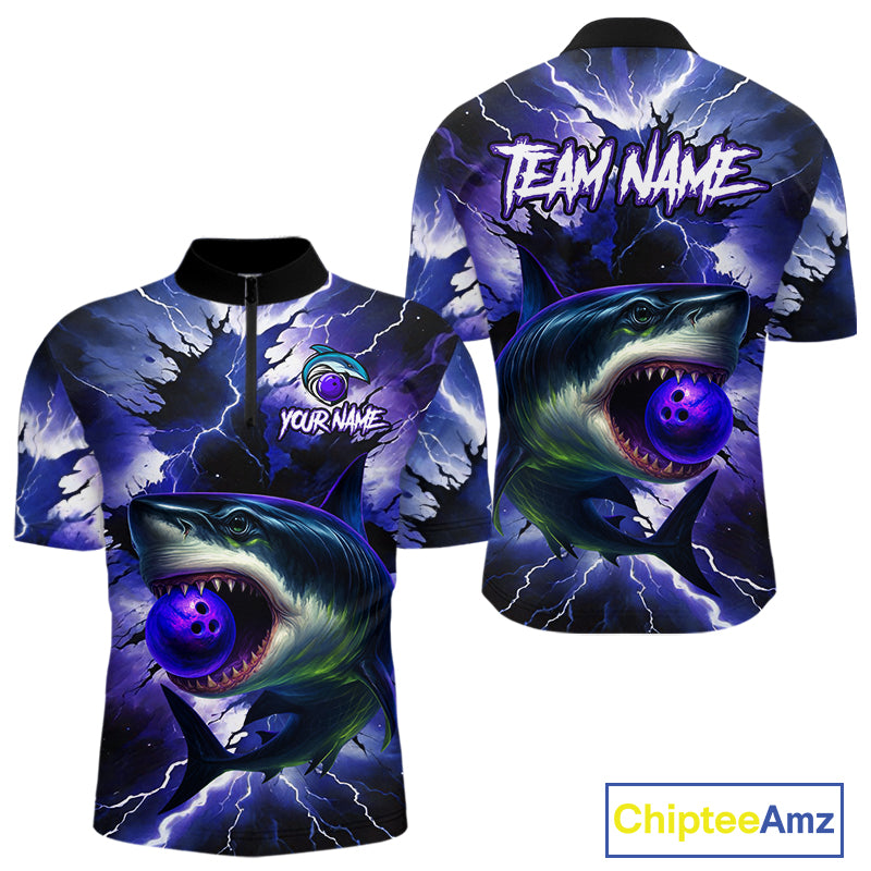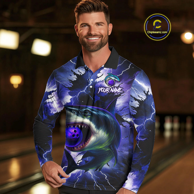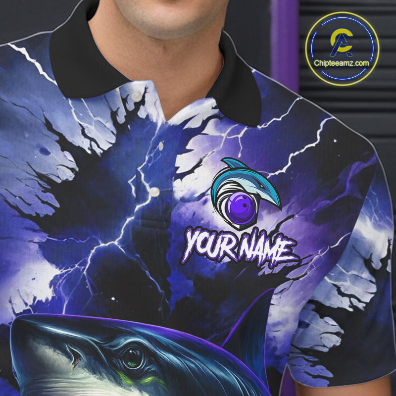 Purple Lightning thunder Shark Bowling Shirts for Men Custom Team Shark Bowling League Jersey NQS10418