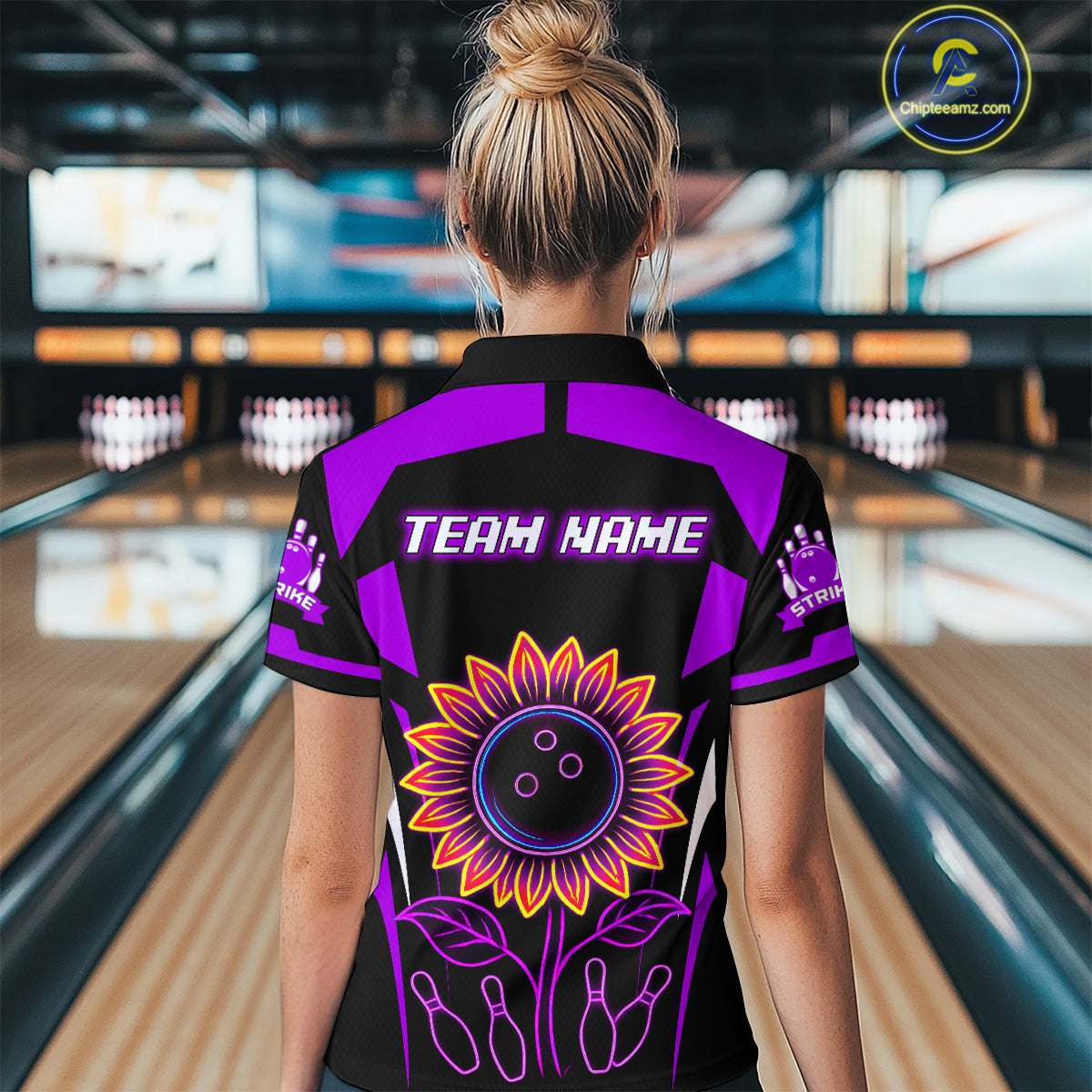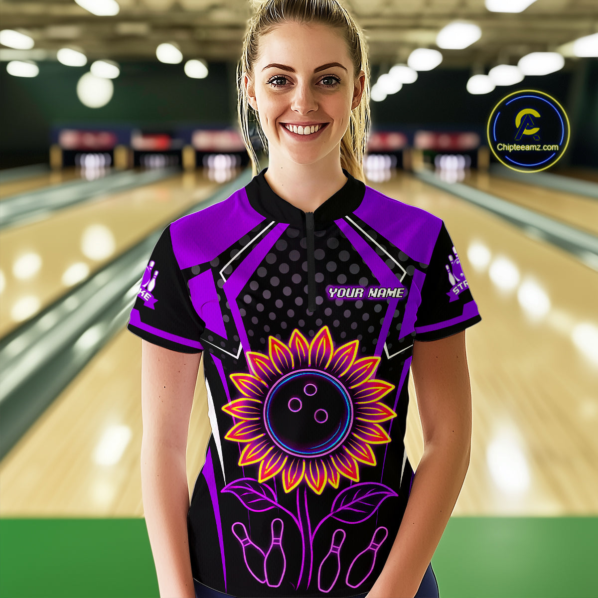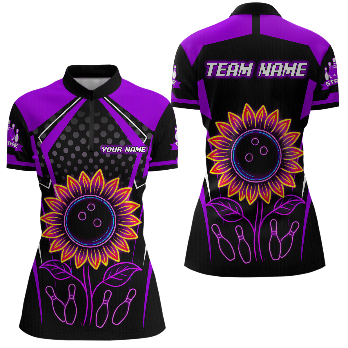 Purple Neon Lightning Sunflower Bowling Shirt for Women Custom Team Bowling Polo Bowling Jersey QZT771
