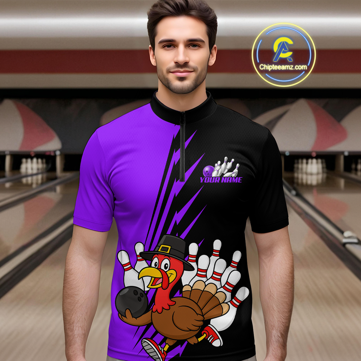Purple Turkey Bowling Shirts for Women Men Team Custom Bowling Jerseys Thanksgiving MBL180