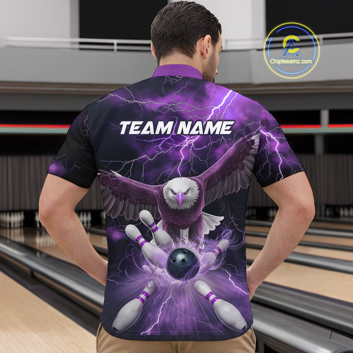Custom Purple Thunder Lightning Eagle Bowling Quarter-Zip Shirts For Men, Eagle Bowling Jerseys IPHW9365