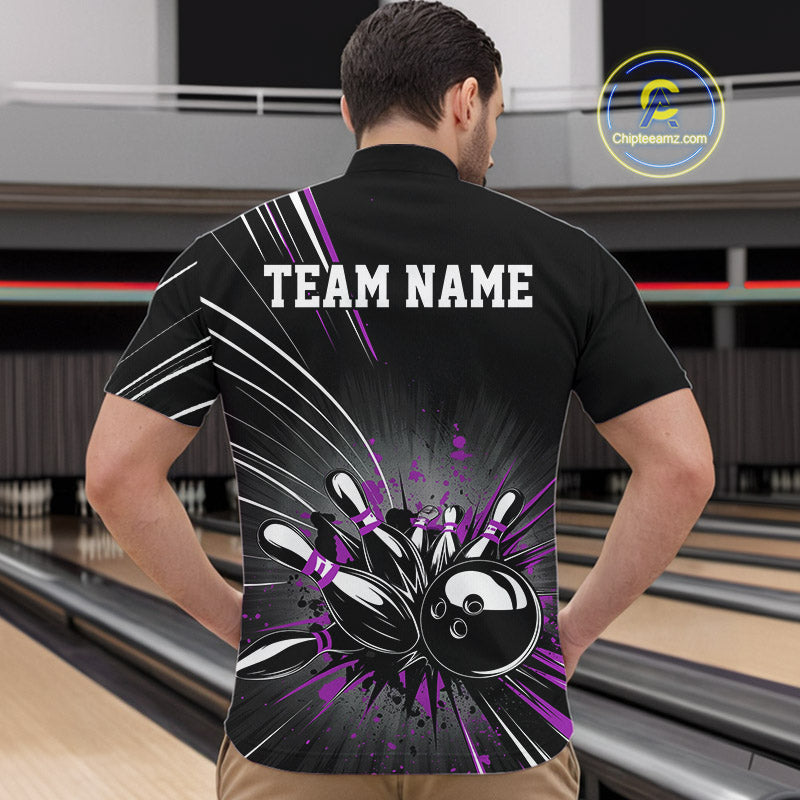 Custom Black And Purple Grunge Bowling Team Jerseys, Men Bowling Quarter-Zip Shirts IPHW9622