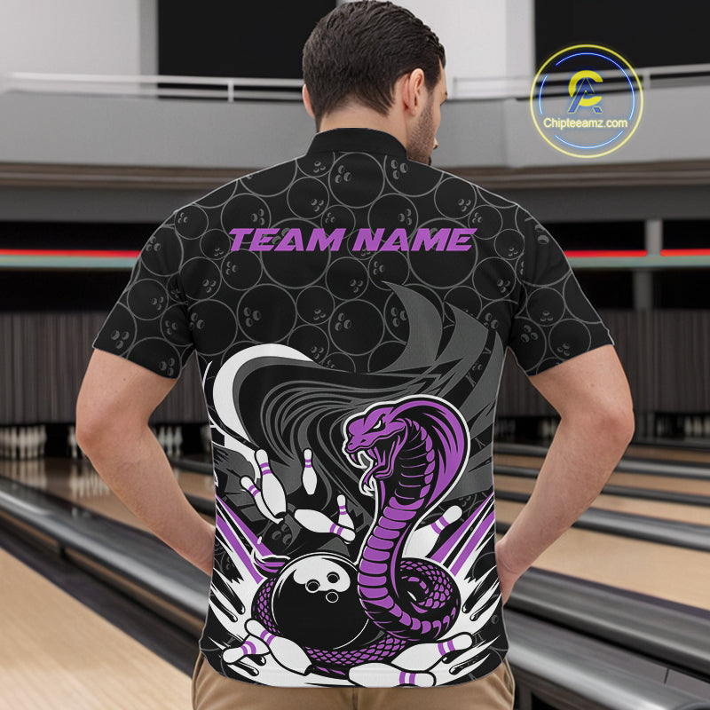 Custom Black And Purple Cobra Snake Bowling Quarter-Zip Shirts For Men, Cobra Bowling Team Shirt IPHW9700