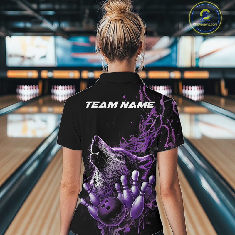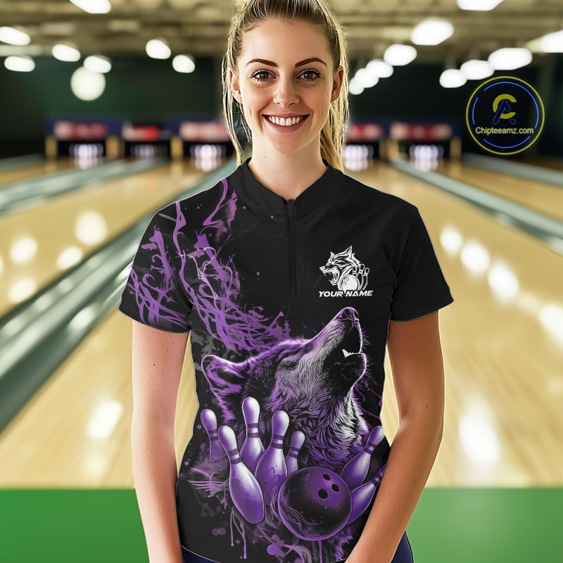 Custom Purple Wolf Howling Women Quarter-Zip Shirt, Wolf Bowling Team Jerseys IPHW10159
