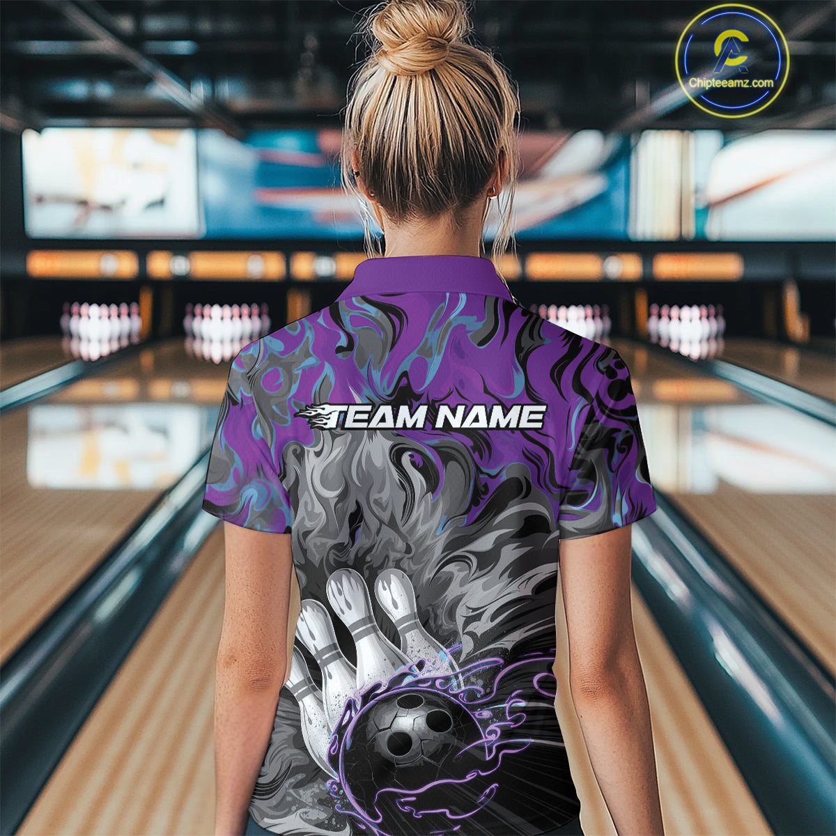 Custom Blue And Purple Fame Bowling Team Women Quarter-Zip Shirt, Fire Bowling Jerseys IPHW9559
