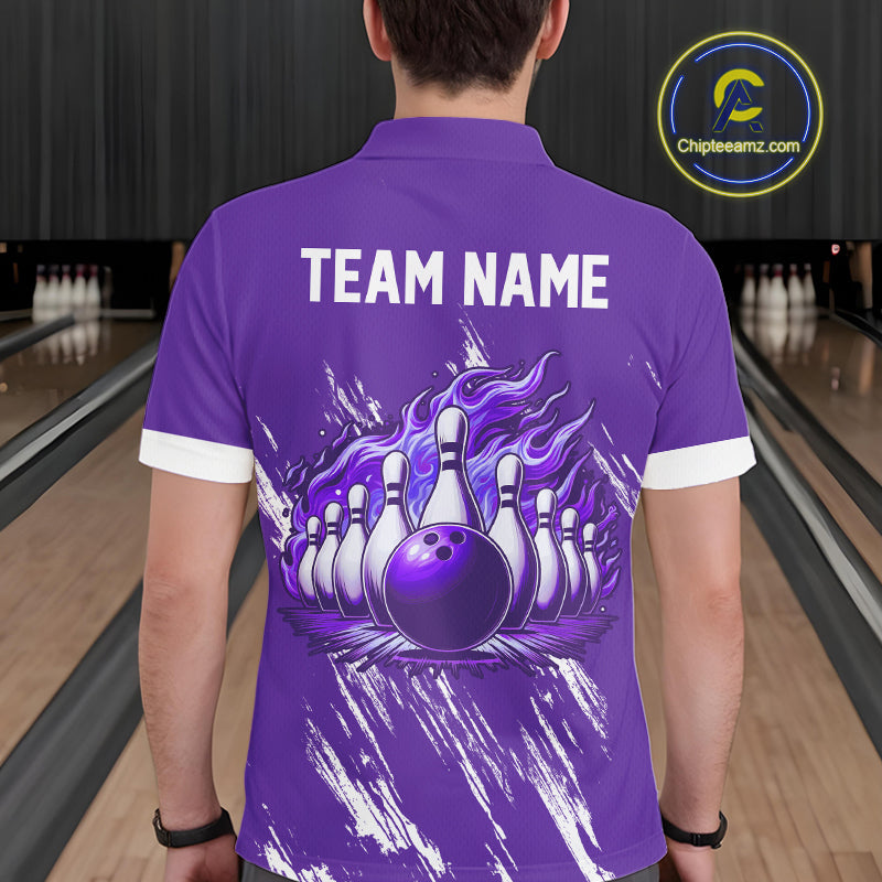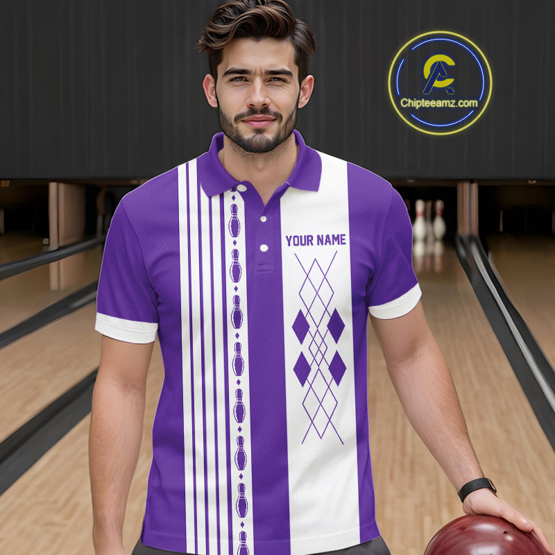 Retro Purple argyle Flame Bowling shirts For Men custom bowling team jerseys Mens Bowler Outfits NQS10326