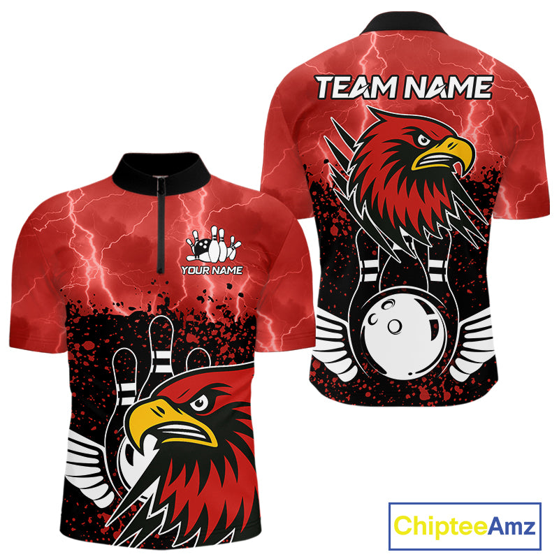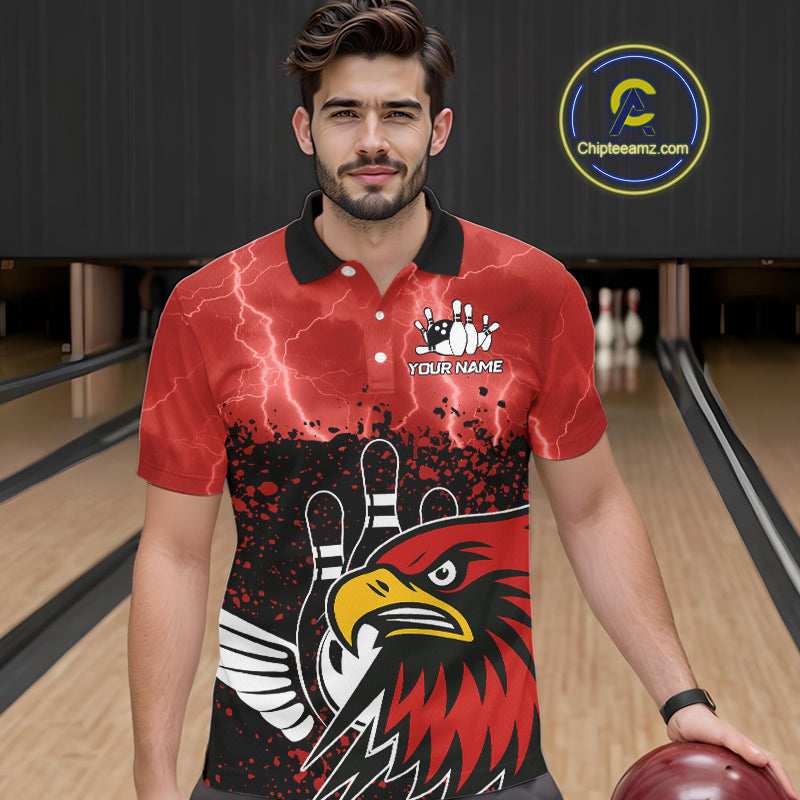 Black and Red Lightning thunder storm Eagle Bowling Shirts for Men Custom Team bowling jerseys NQS10022