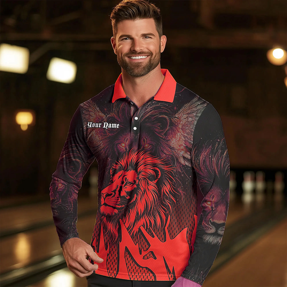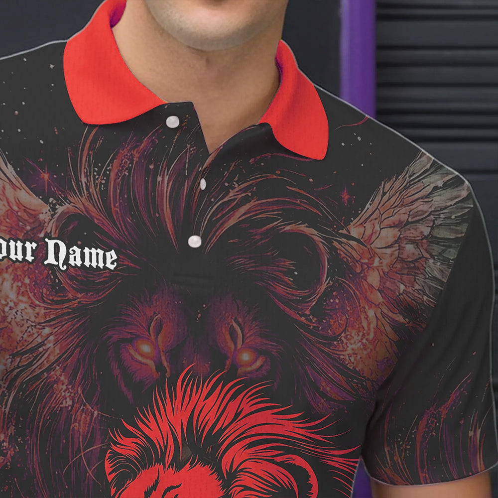 Black and Red Lion Bowling Polo, Quarter Zip Shirts For Men Custom Team Lion Bowling Jerseys NQS9598