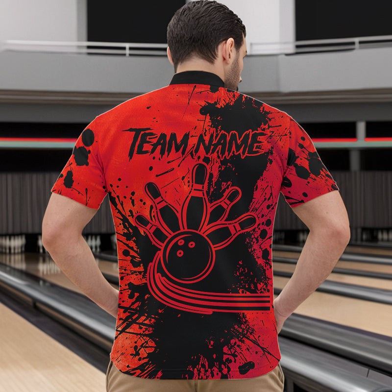 Black and Red Mens Bowling Polo, Quarter Zip Shirts Custom Bowling Team League Jerseys NQS9569