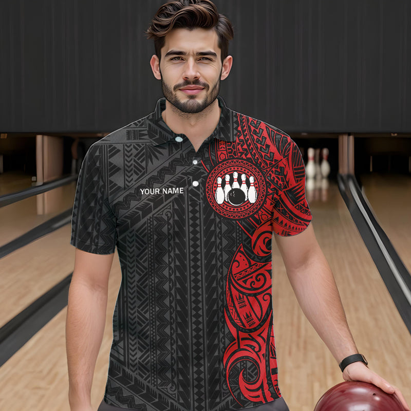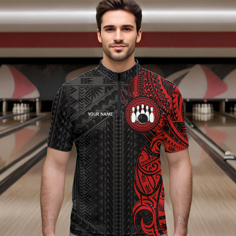 Black and Red Tribal pattern Mens Bowling Shirts Custom Bowling outfit men Team bowling league jersey NQS9738
