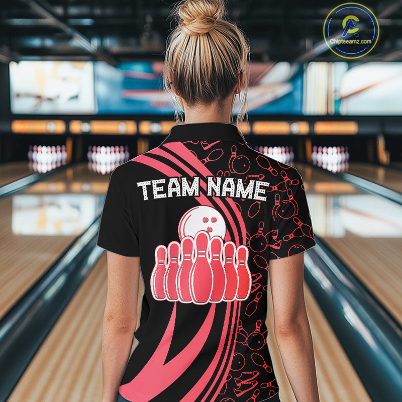 Black Women bowling shirts Custom Red neon team league bowling jerseys, gifts for bowlers NQS9983