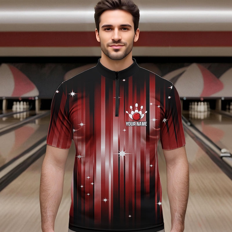 Custom Black and Red Bowling Polo, Quarter Zip Shirts for Men, Bowling Team Shirts Uniform NQS9621