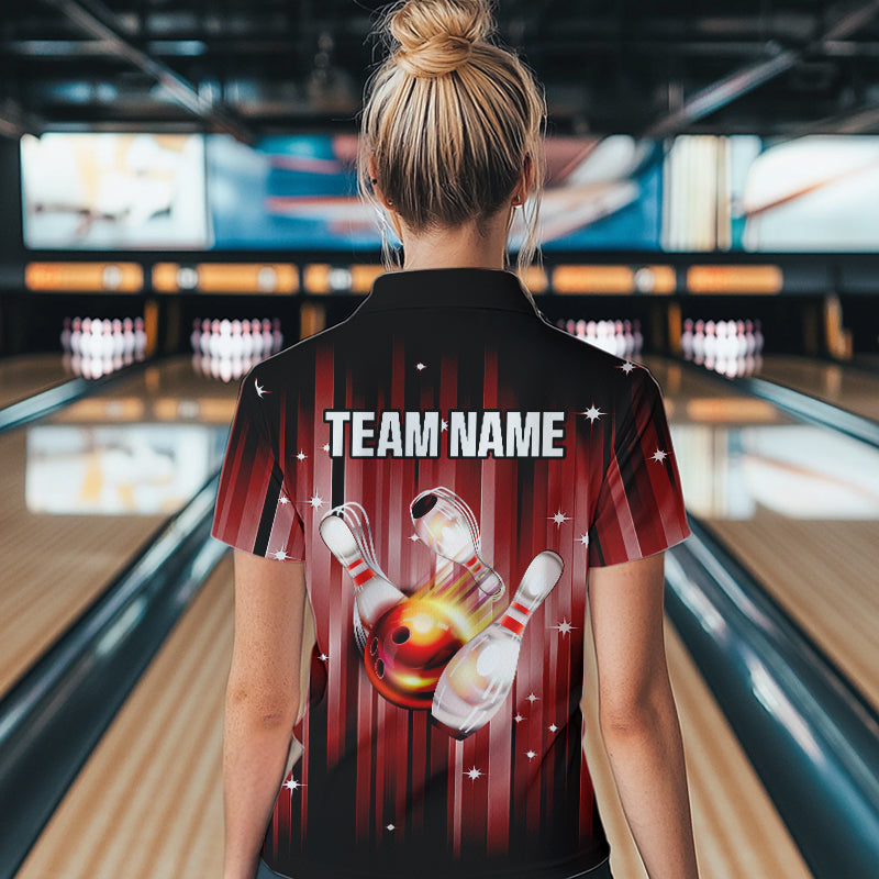 Custom Black and Red Bowling Polo, Quarter Zip Shirts for Women, Bowling Team Shirts Uniform NQS9621