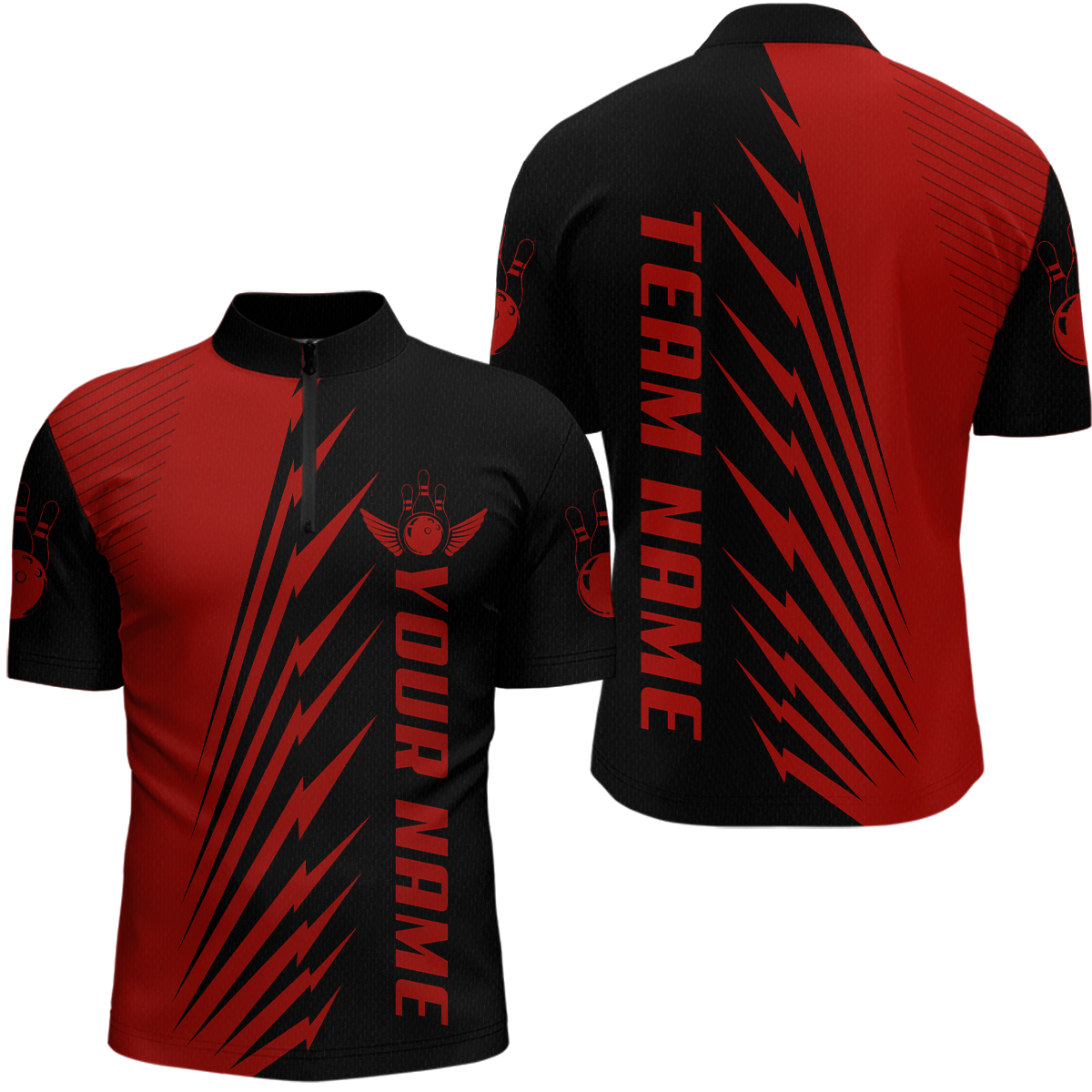 Custom Red Bowling Shirts for Men Women Team Bowling Polo & 1/4 Zip Shirt MBL48