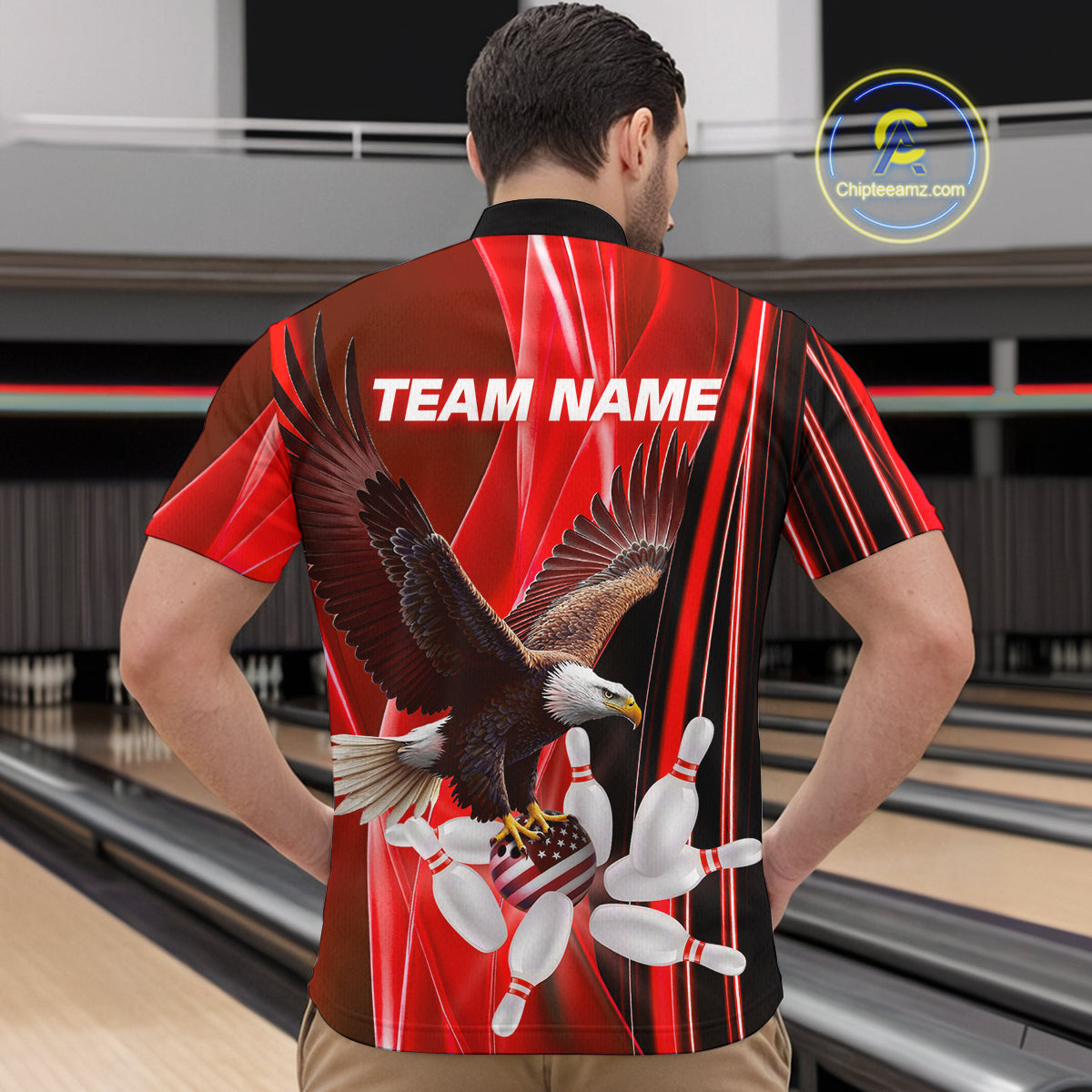 Custom Red Eagle Bowling Shirt for Men Women Team Bowling Polo Shirts & 1/4 Zip MBL95