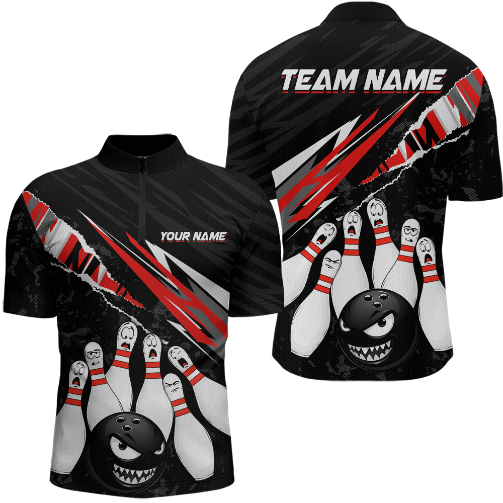 Custom Red Funny Bowling Jersey for Men Bowling Uniform Polo & 1/4 Zip Bowling Team Shirts HNT128