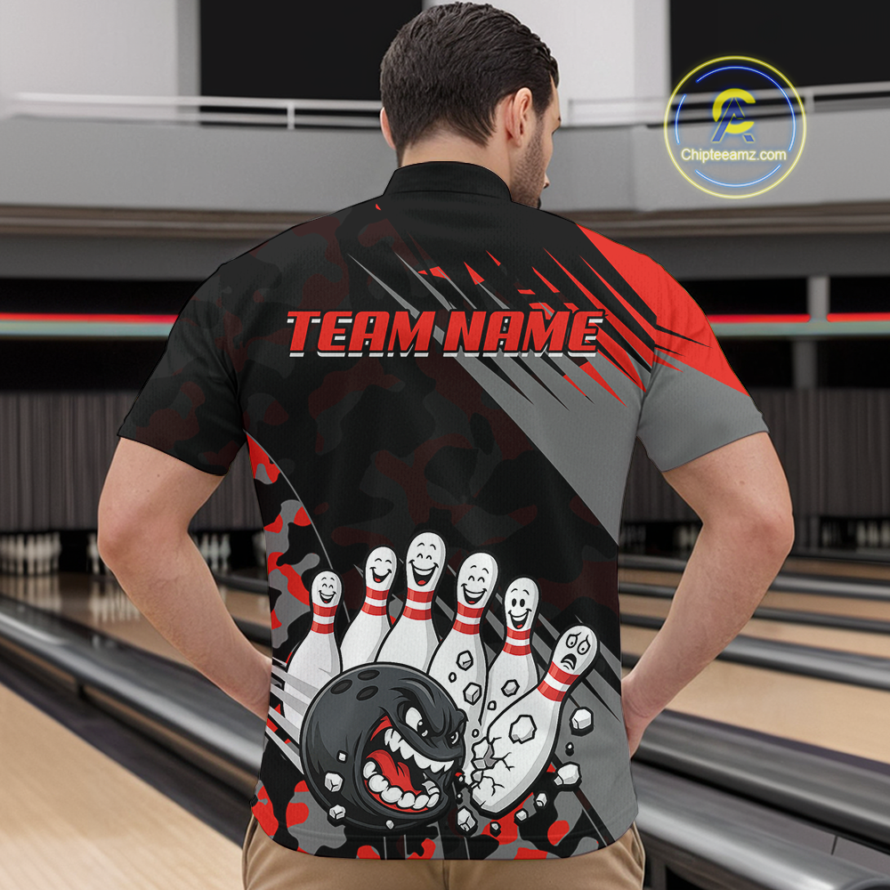 Custom Red Funny Bowling Shirt Crazy Bowling Jersey Men Polo & 1/4 Zip Bowling Outfit QZT785