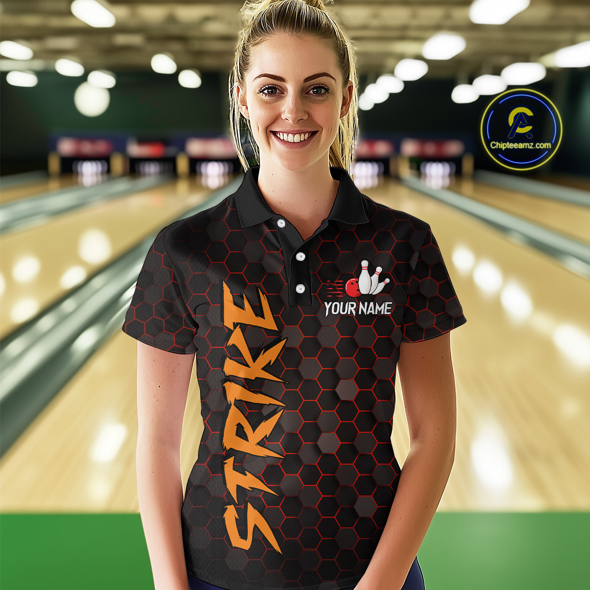 Custom Strike Red Bowling Women Bowling Shirt Polo & Quarter-Zip Bowling Team Jerseys HNT79
