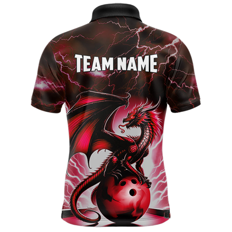 Red Thunder Lightning Custom Dragon Bowling Shirts For Men, Bowling Team Jerseys Polo & 1/4 Zip TDM3679