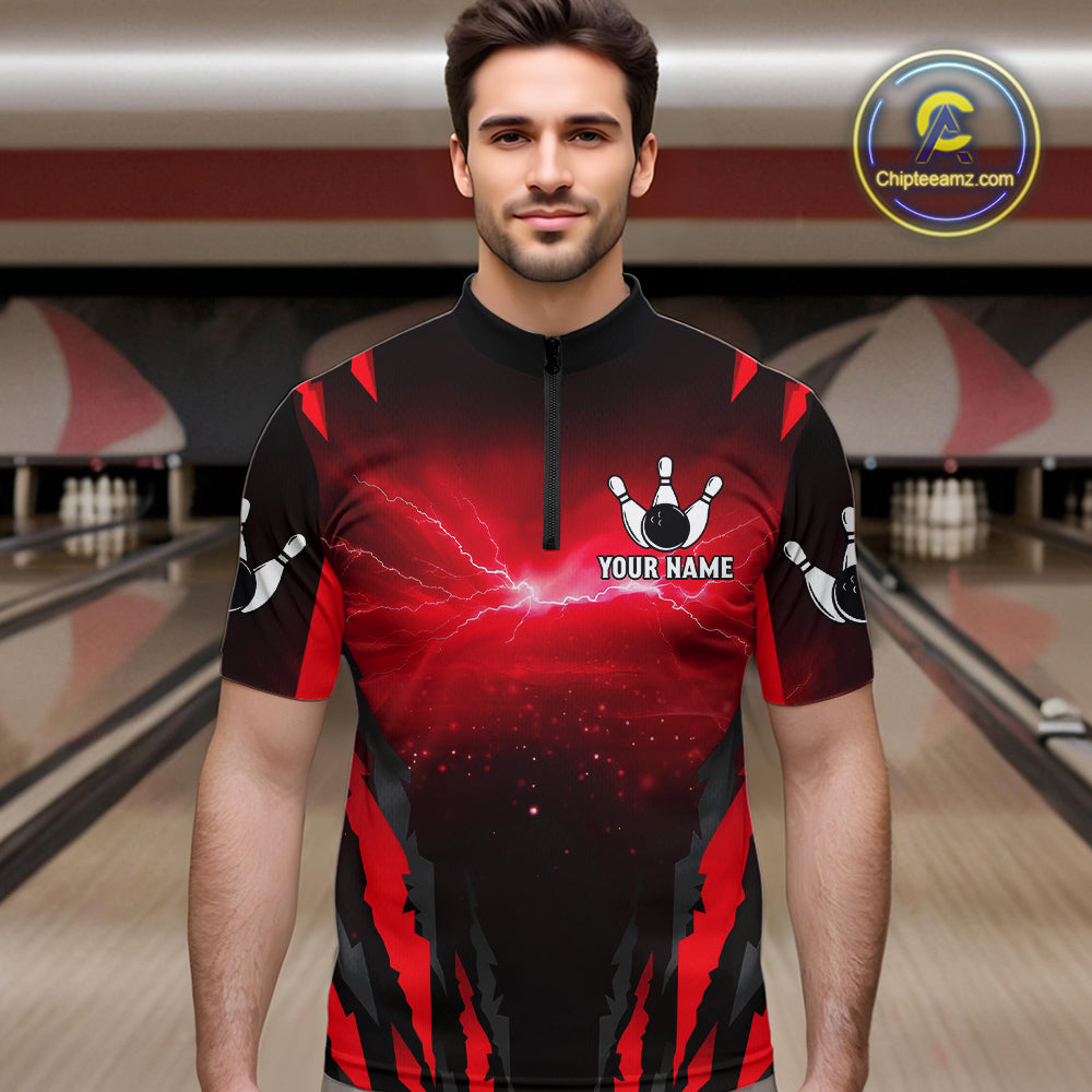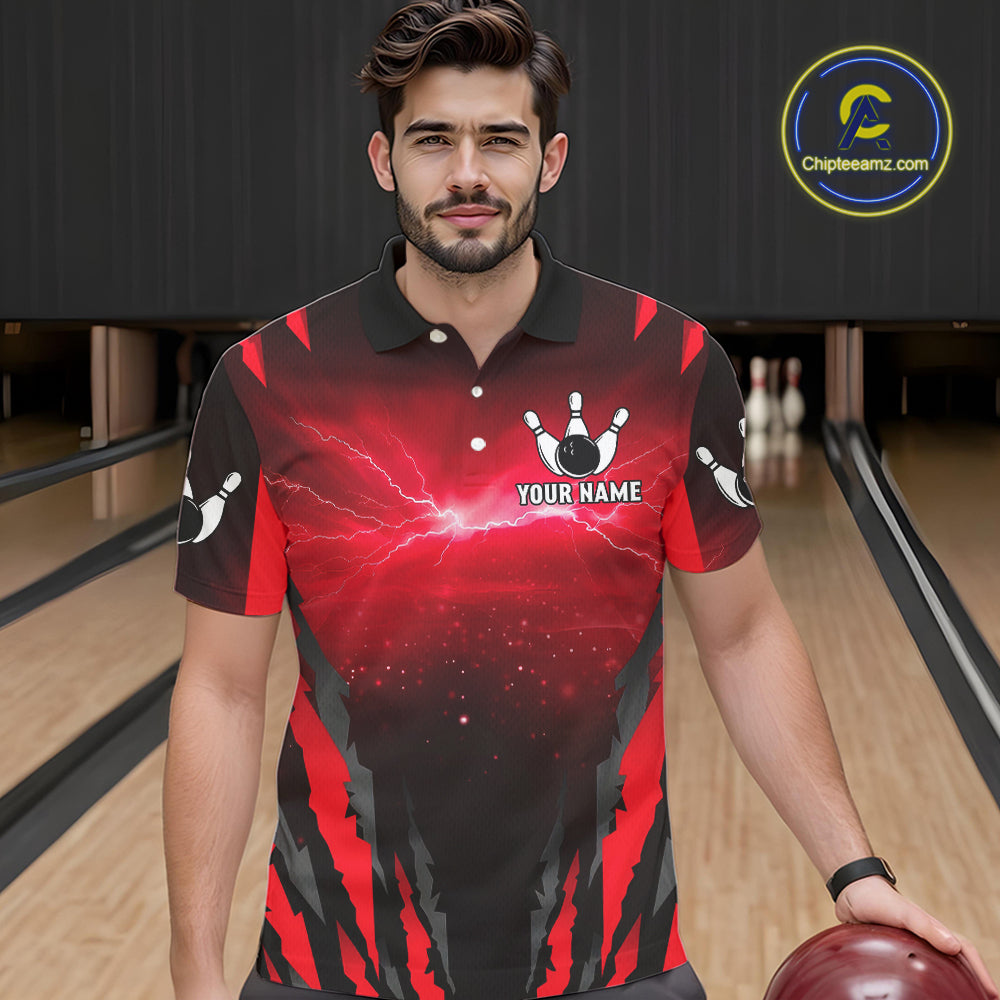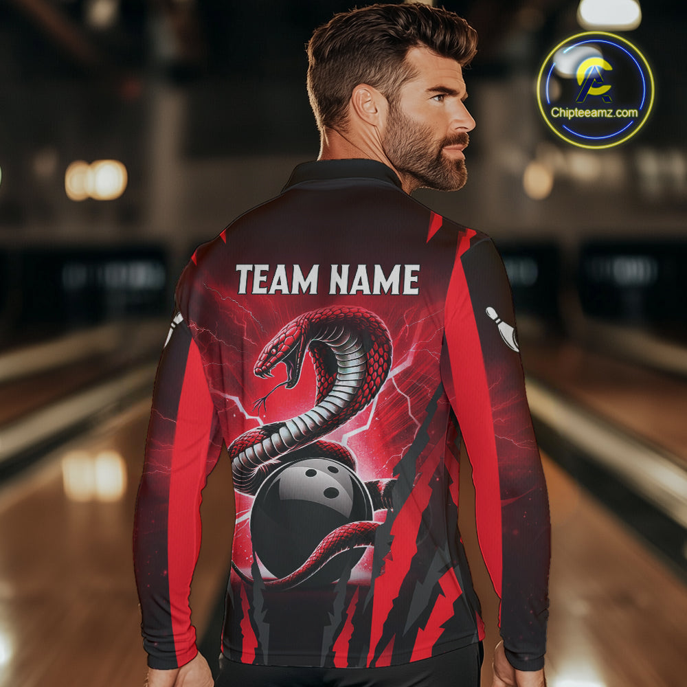 Personalized Thunder Lightning Cobra Snake Bowling Shirts For Men, Red Bowling Team Jersey TDM4644