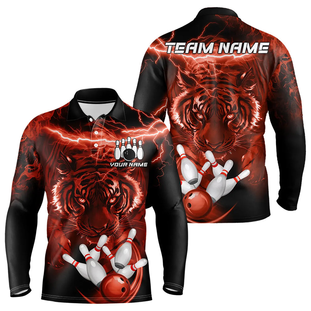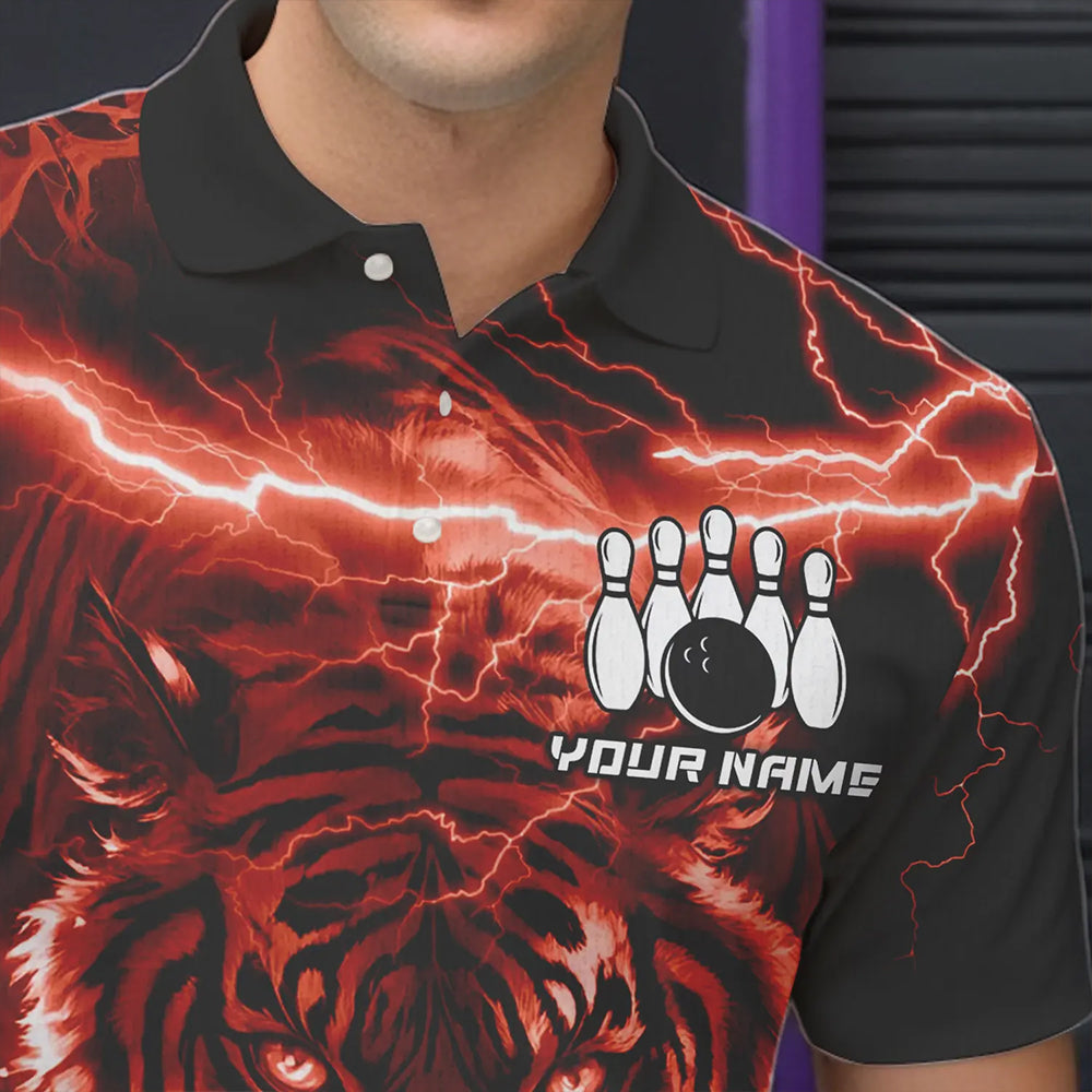 Personalized Red Lightning Thunder Storm Tiger Bowling Shirts For Men Custom Bowling Team Jerseys NQS9683