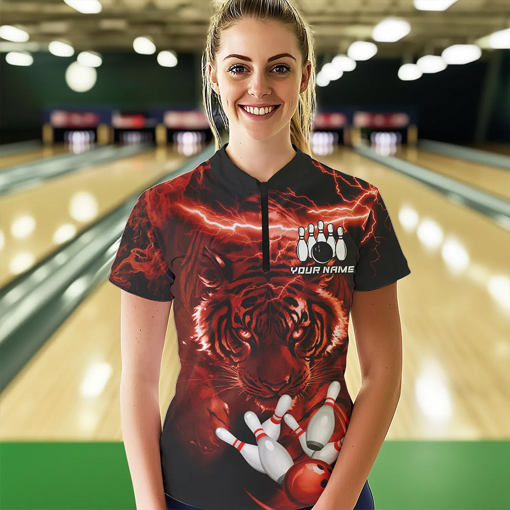 Personalized Red Lightning Thunder Storm Tiger Bowling Shirts For Women Custom Bowling Team Jerseys NQS9683