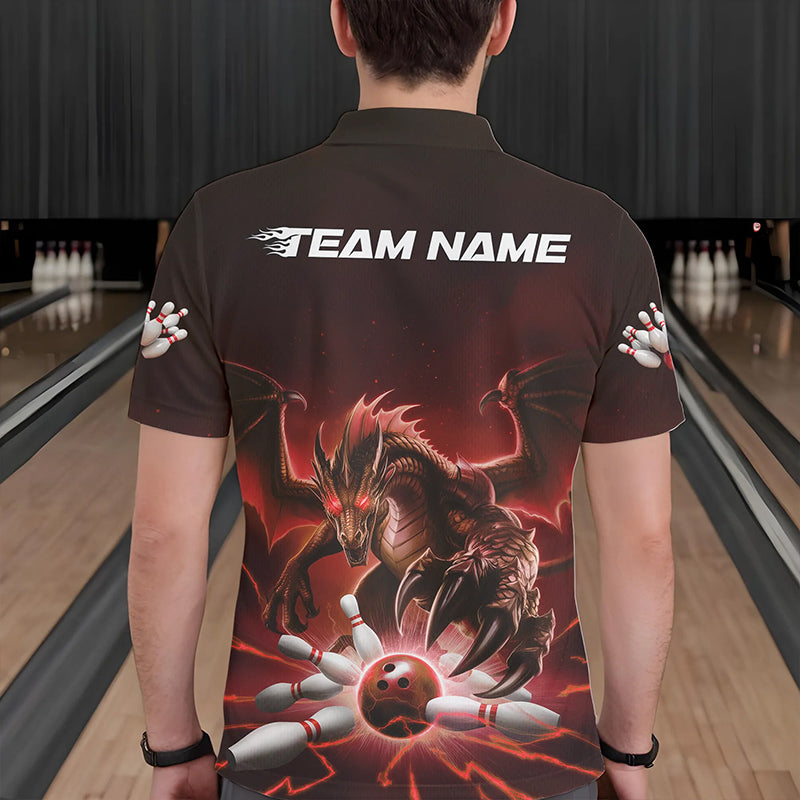 Custom Black And Red Dragon Bowling Team Polo Shirts For Men, Dragon Bowling League Shirt IPHW8549