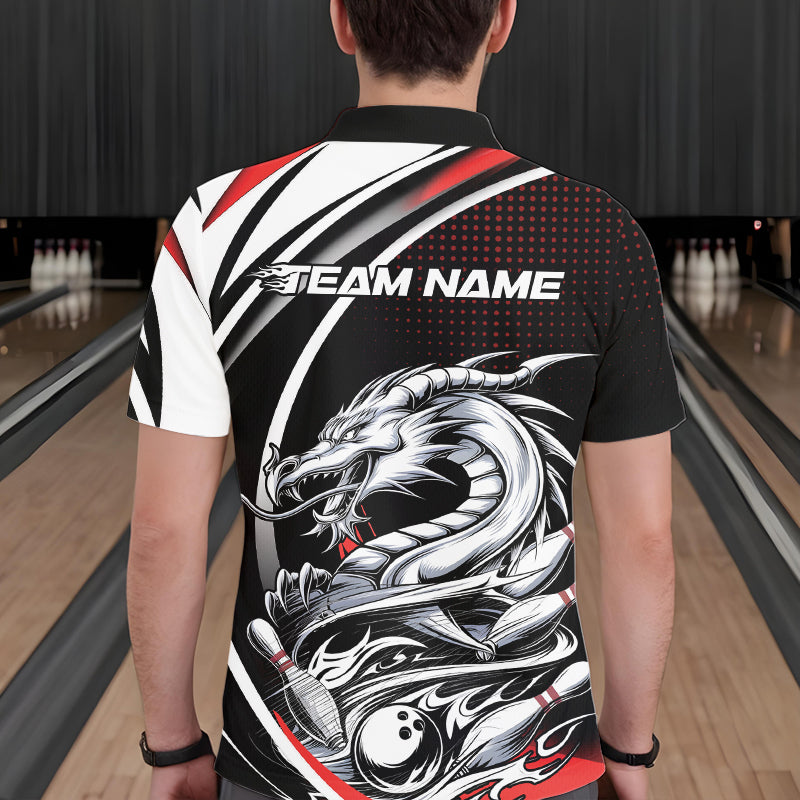 Custom Black And Red Dragon Bowling Team Polo Shirts For Men, Dragon Bowling Jerseys IPHW8705