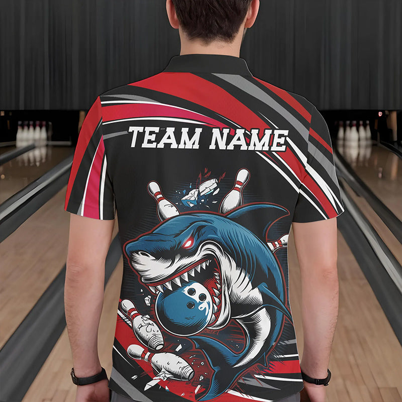 Black And Red Custom Shark Bowling Team Polo Shirts For Men, Shark Bowling League Shirt IPHW8726